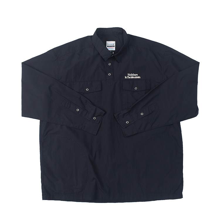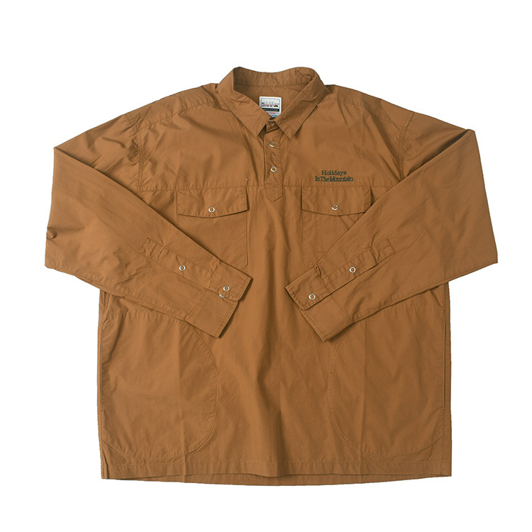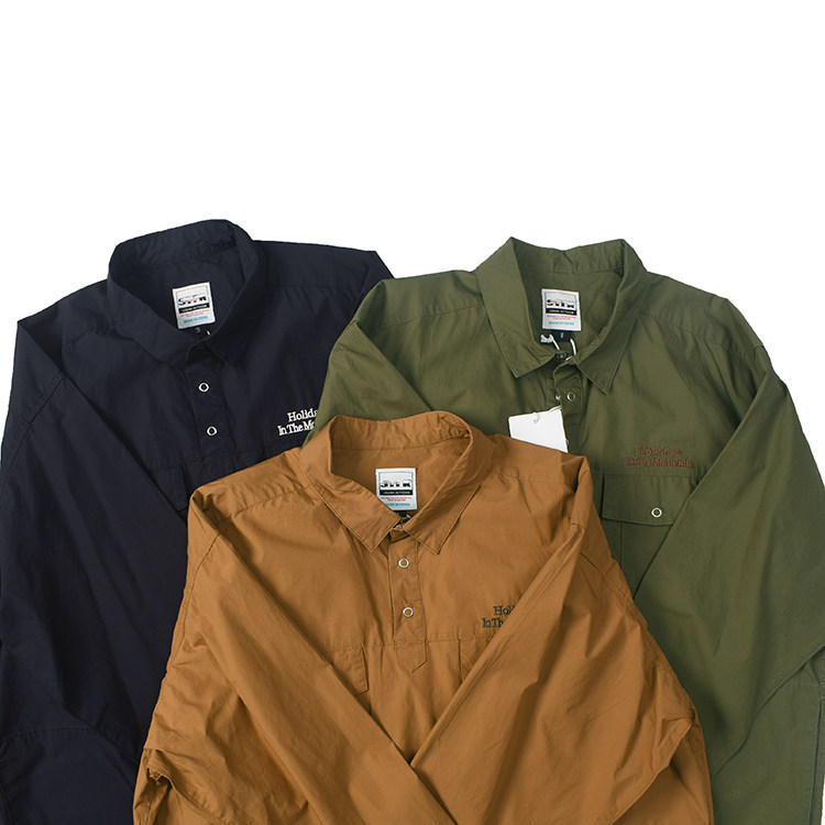 三色休闲宽松长袖 半领套头 衬衫 复古做旧水洗口袋工装 衬衣563 日式