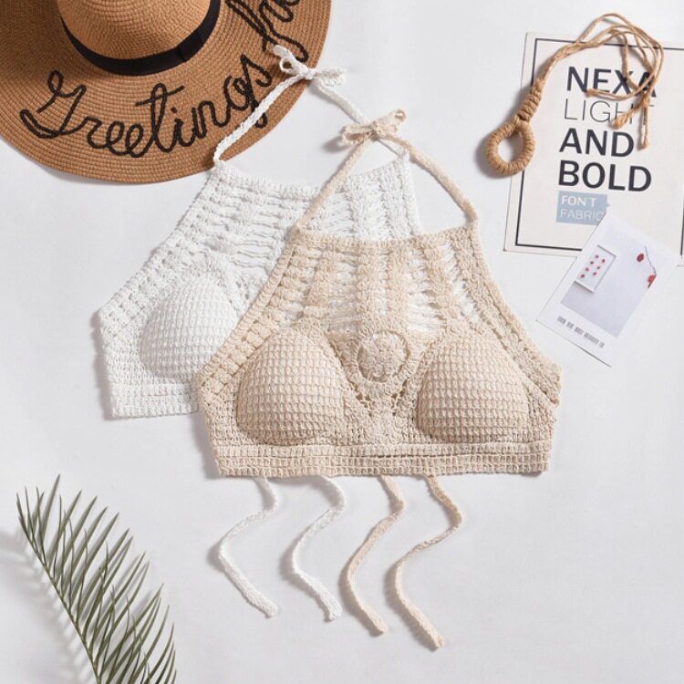 镂空泳衣挂脖小背心吊带内搭漏肩带胸垫露背抹胸刺绣女夏短款 上衣