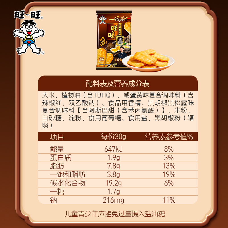 黑松露蛋黄味仙贝零食饼干米饼56g 旺旺X一饭封神新品 6包 百补