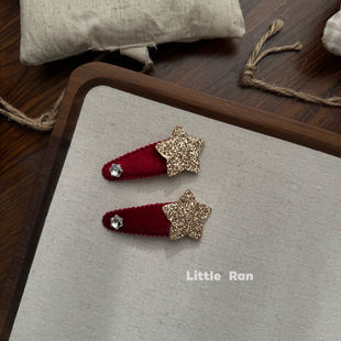 新年红色毛绒星星发夹蝴蝶结刘海BB侧边发卡圣诞节头饰女发饰2025