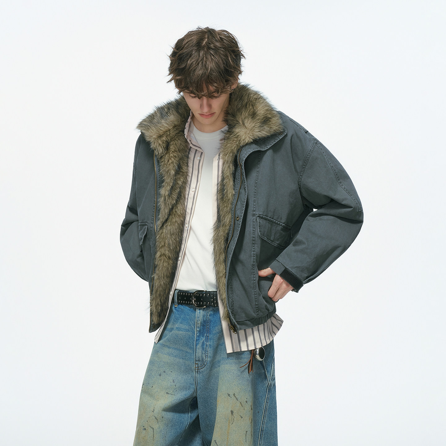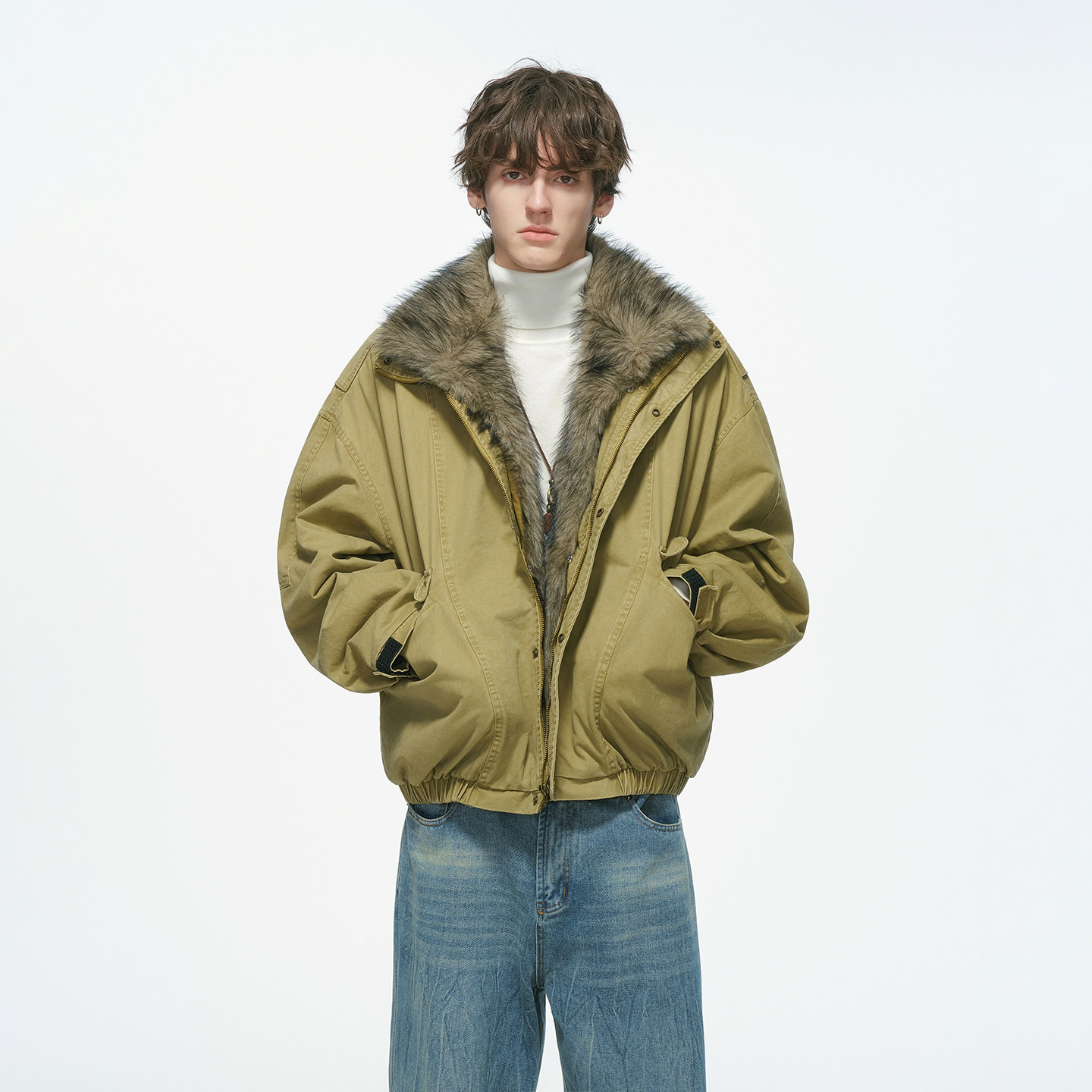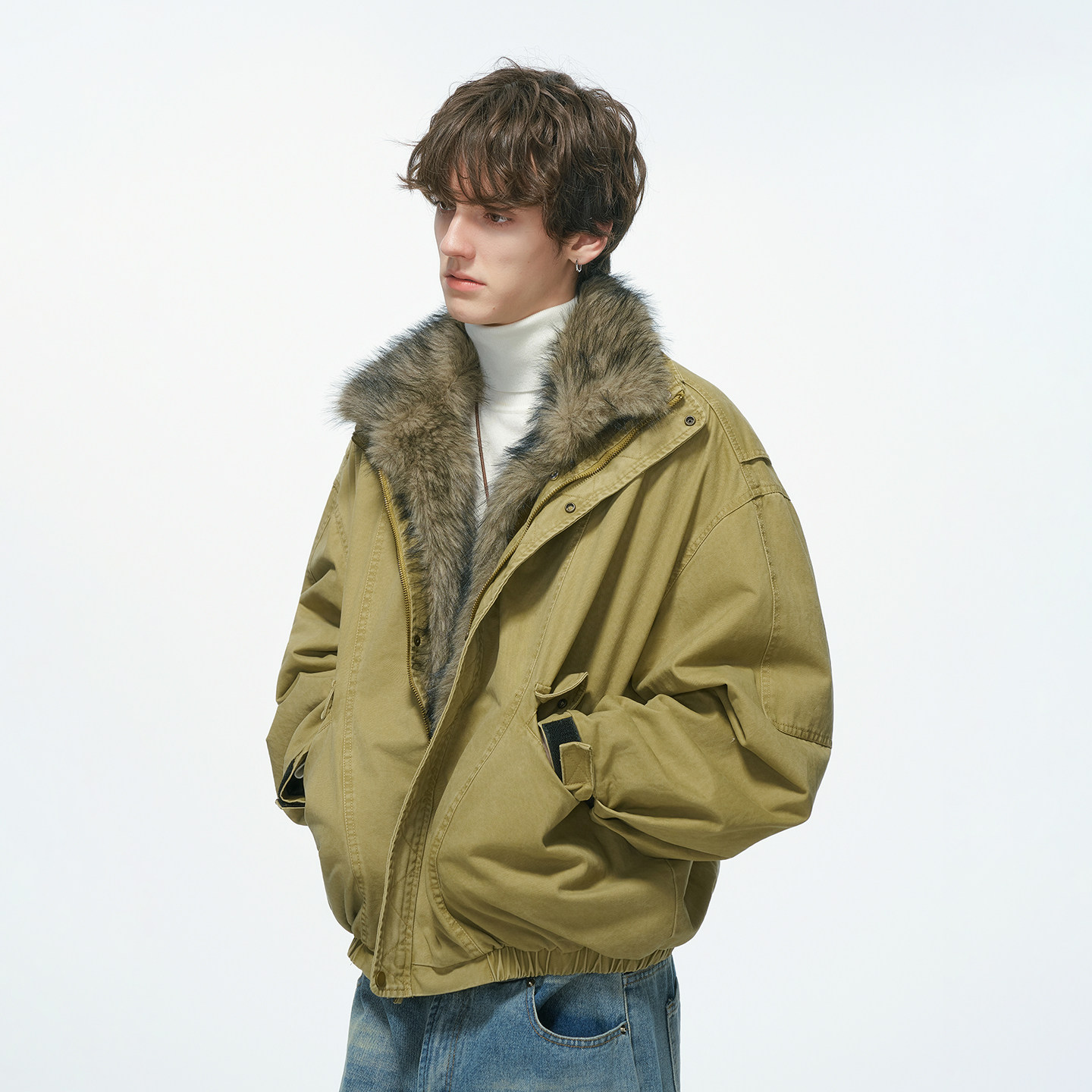 慵懒风派克服棉服 藏青色复古加厚夹棉连帽外套女胖mm美式 大码 女装