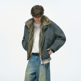 黑色休闲百搭连帽夹克上衣 胖mm双面穿毛绒棉服外套女冬季 大码 女装