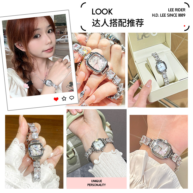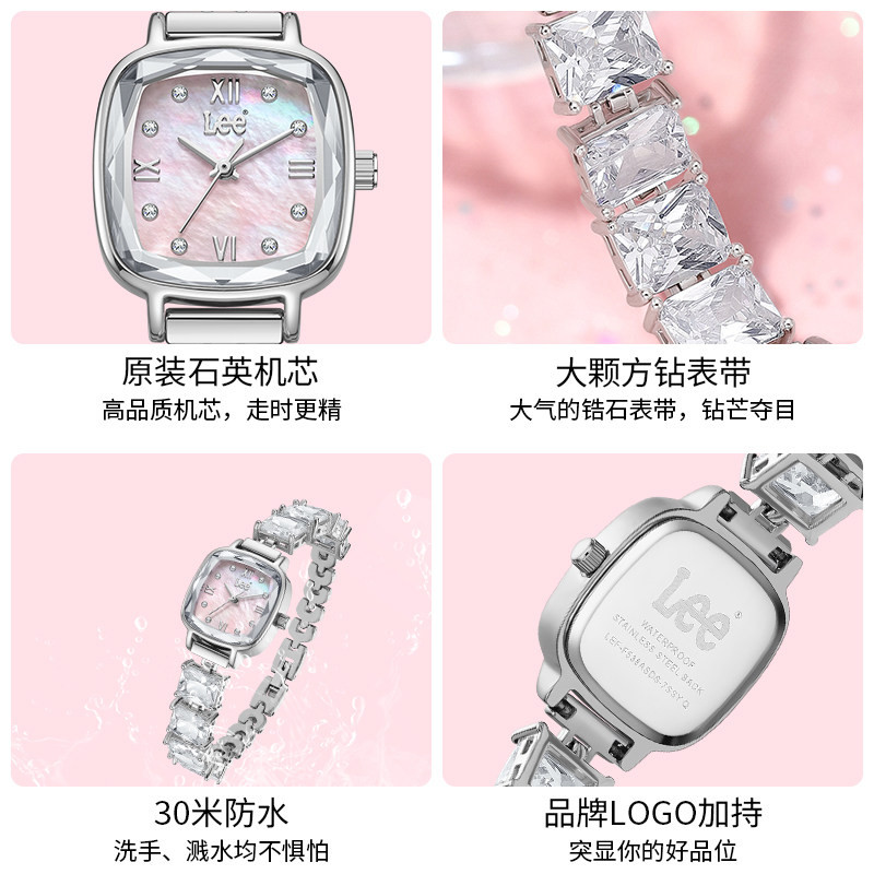 LEE手表女款 贝母小表盘小众轻奢镶钻手链女士石英生日情人节礼物