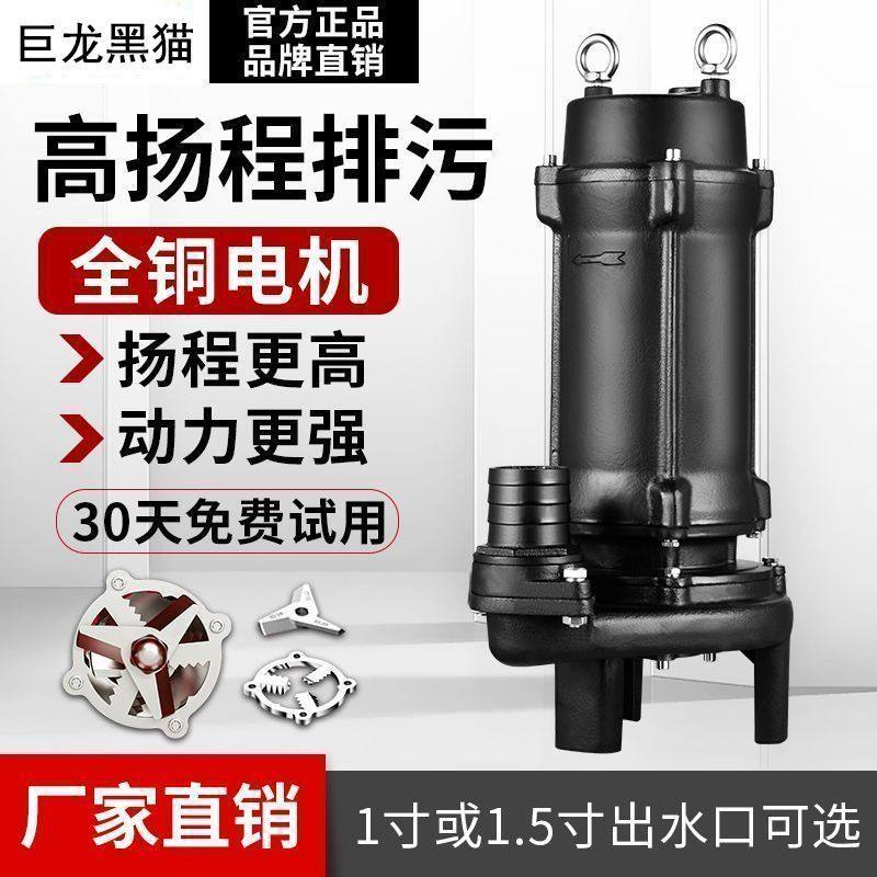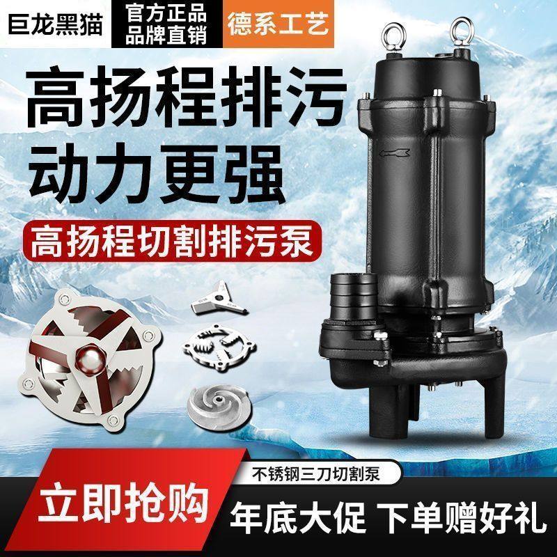 巨龙黑猫380v高扬程养殖场抽粪化粪池排污泵大流量220v切割潜水泵