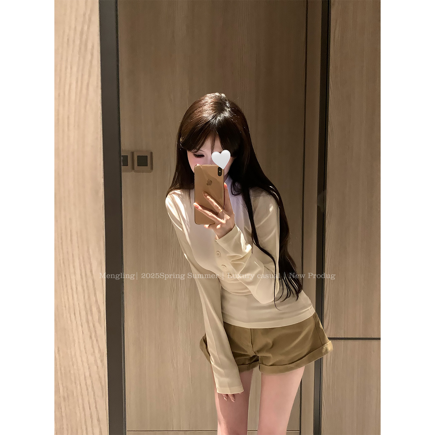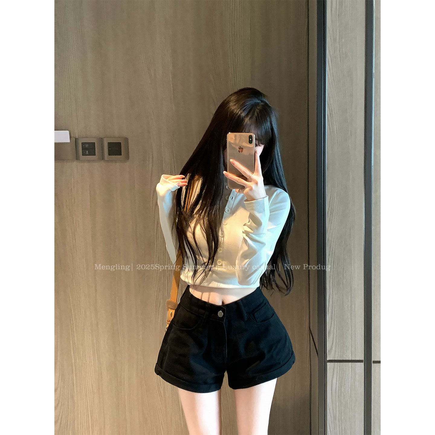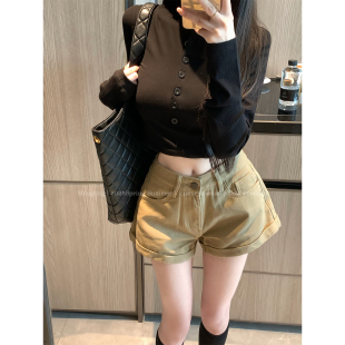 美式 阔腿热裤 姐系 女百搭经典 卡其色休闲牛仔短裤 Mengling梦玲