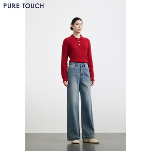 Polo翻领羊毛针织衫 25秋冬新款 新年红绞花宽松毛衣 TOUCH女装 PURE
