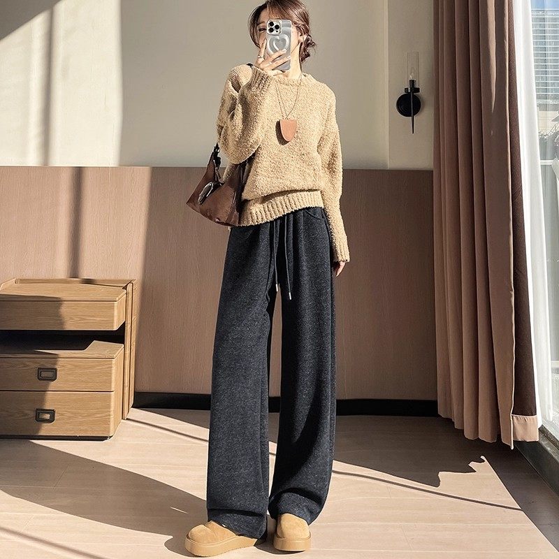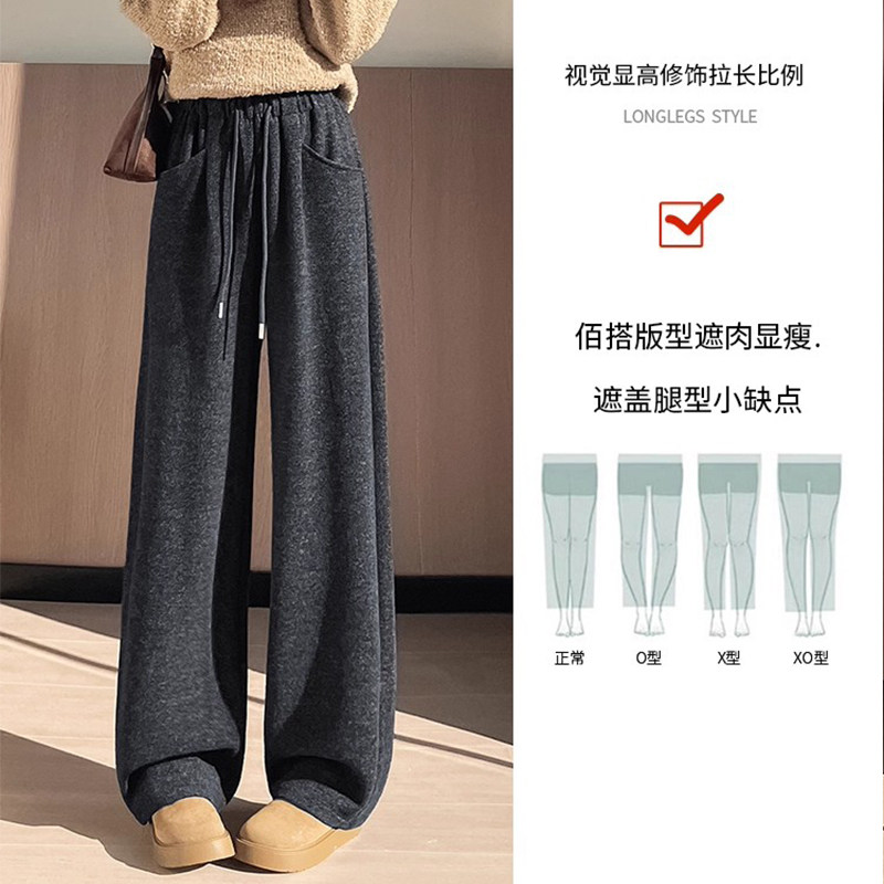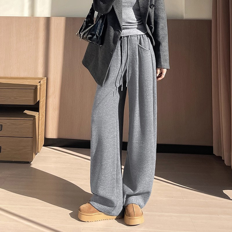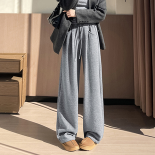 宽松显瘦高腰垂感慵懒阔腿裤 糯米云朵裤 女2025秋冬新款 灰色休闲裤