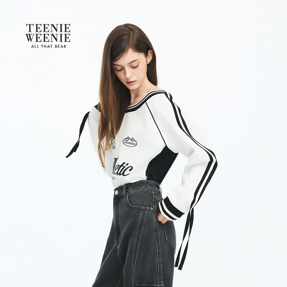 一字肩球衣风印花长袖 TEENIEWEENIE 女装 新款 卫衣 bearnova26春季