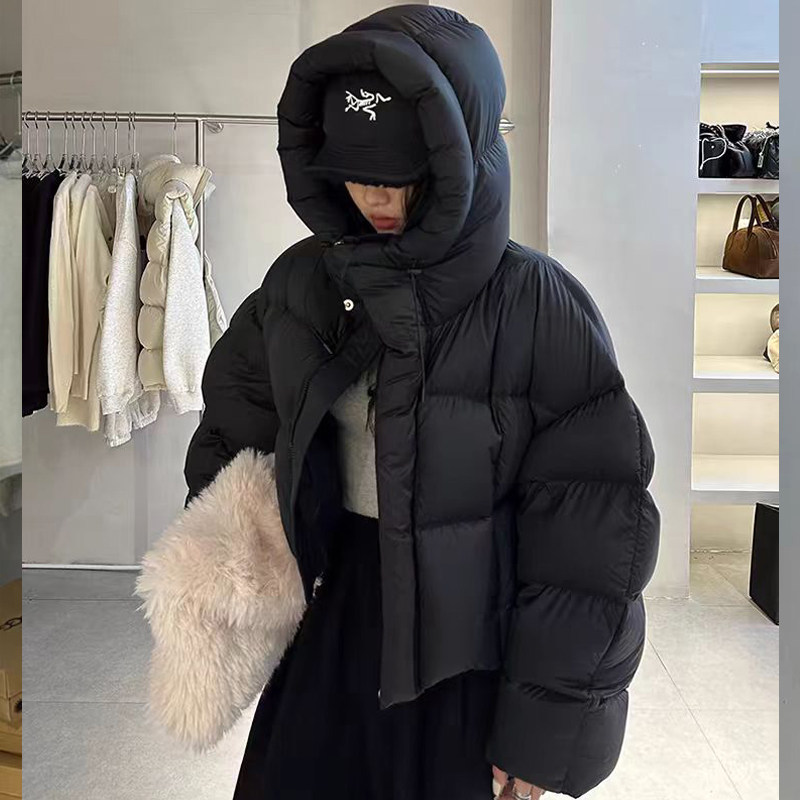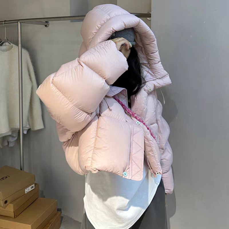SREK高级感毛领连帽棉服女座山雕外套冬季 保暖收腰显瘦棉衣 短款