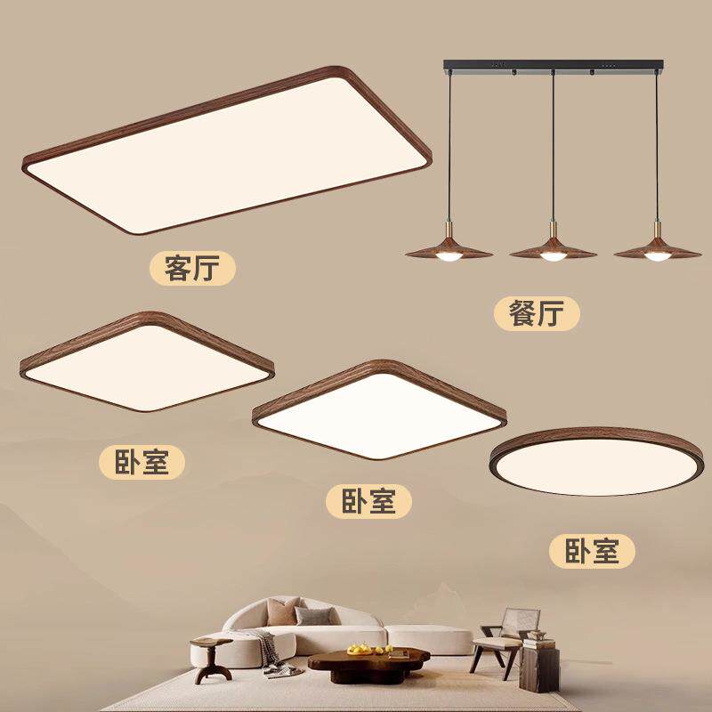 胡桃木色吸顶灯餐厅主卧室房间灯中山灯具护眼全光谱中古风客厅灯