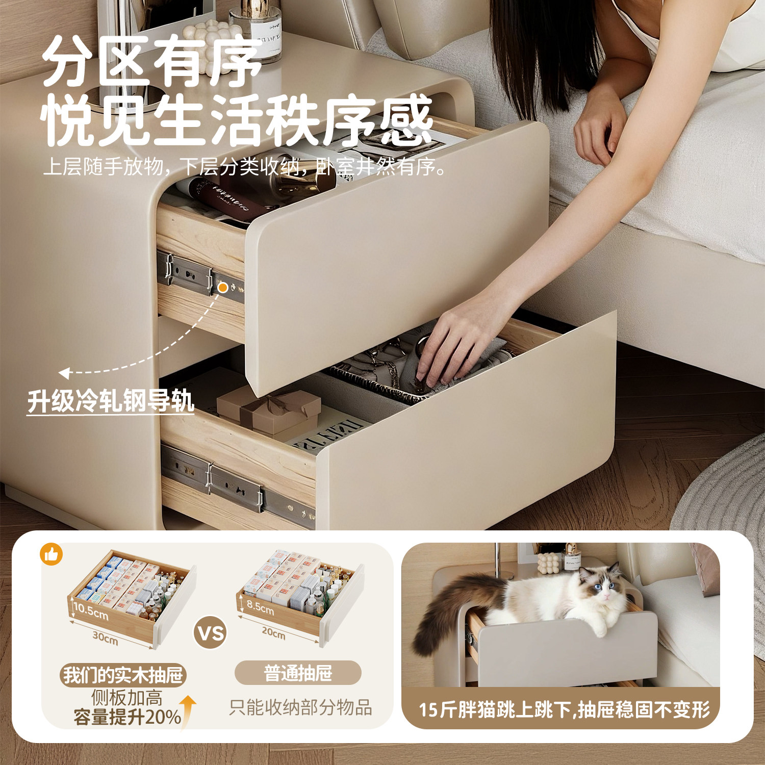 奶油风实木床头柜家用卧室小型床边收纳小柜子2025爆款 轻奢高级感