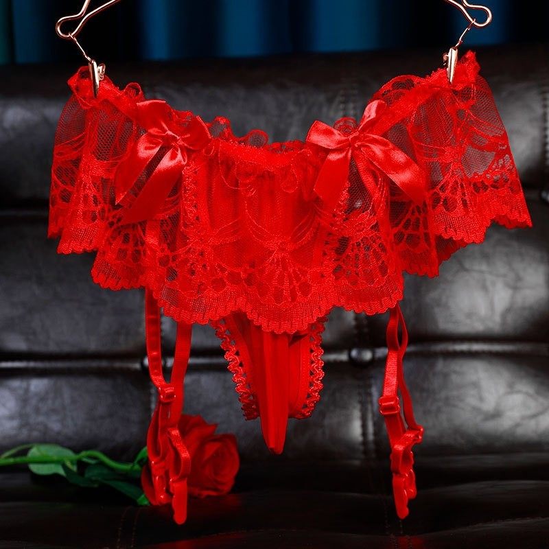 jj套蕾丝内裤 丁字裤 吊带一体一片式 内裤 基佬低腰透明 男士