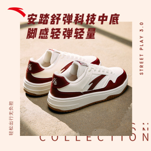 春季 2026新款 鞋 子皮面防水滑板鞋 女 安踏街顽3板鞋 休闲运动鞋 女鞋
