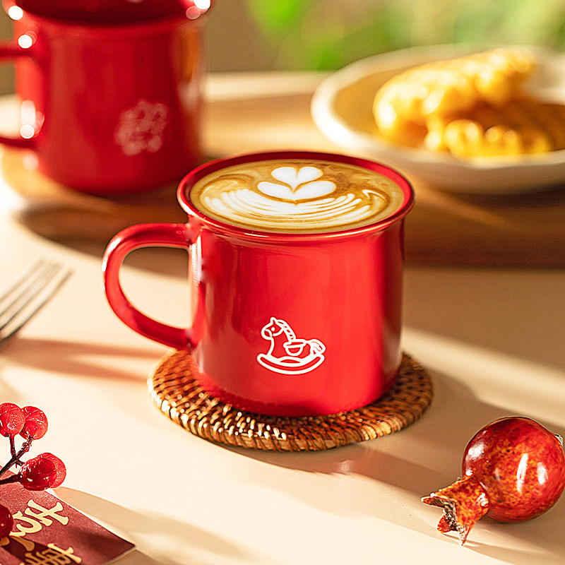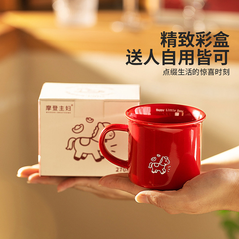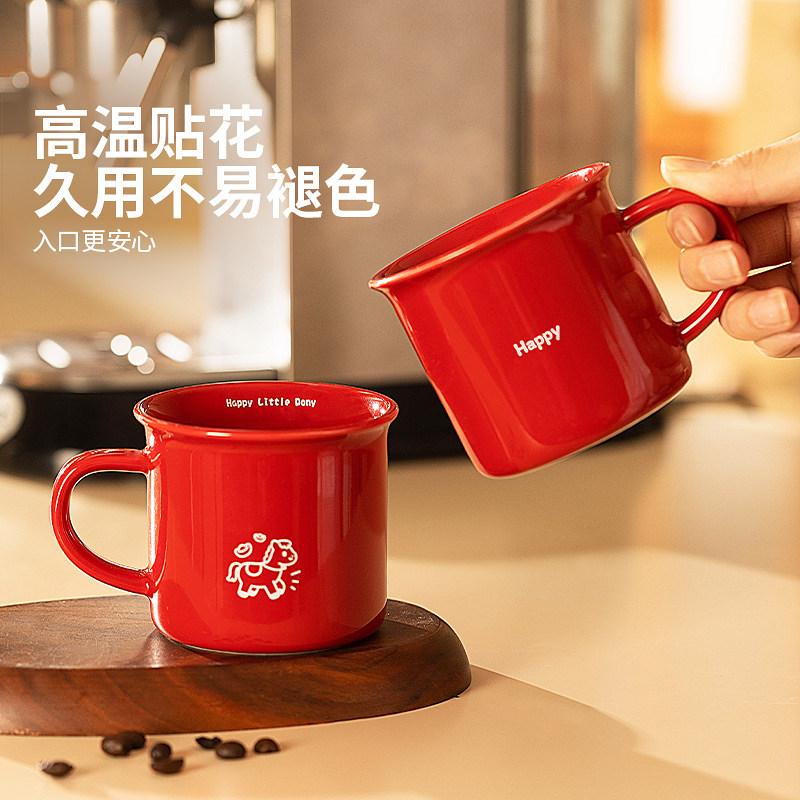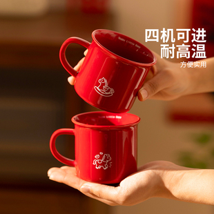 发财暴富陶瓷马克杯带盖家用仿搪瓷大容量早餐杯子办公室喝水茶缸