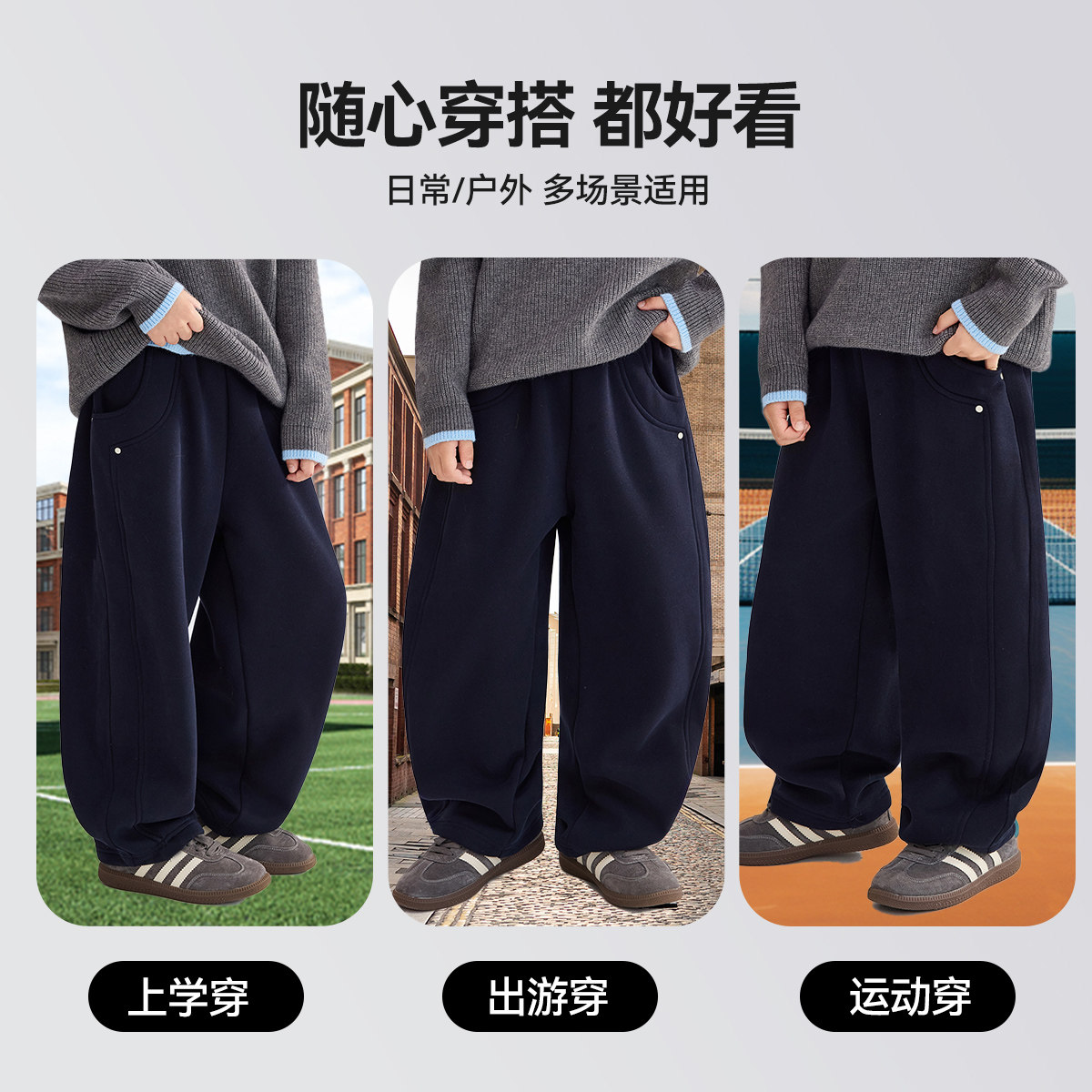 中大童休闲裤 ask儿童裤 男童加绒保暖卫裤 新款 子2025冬季
