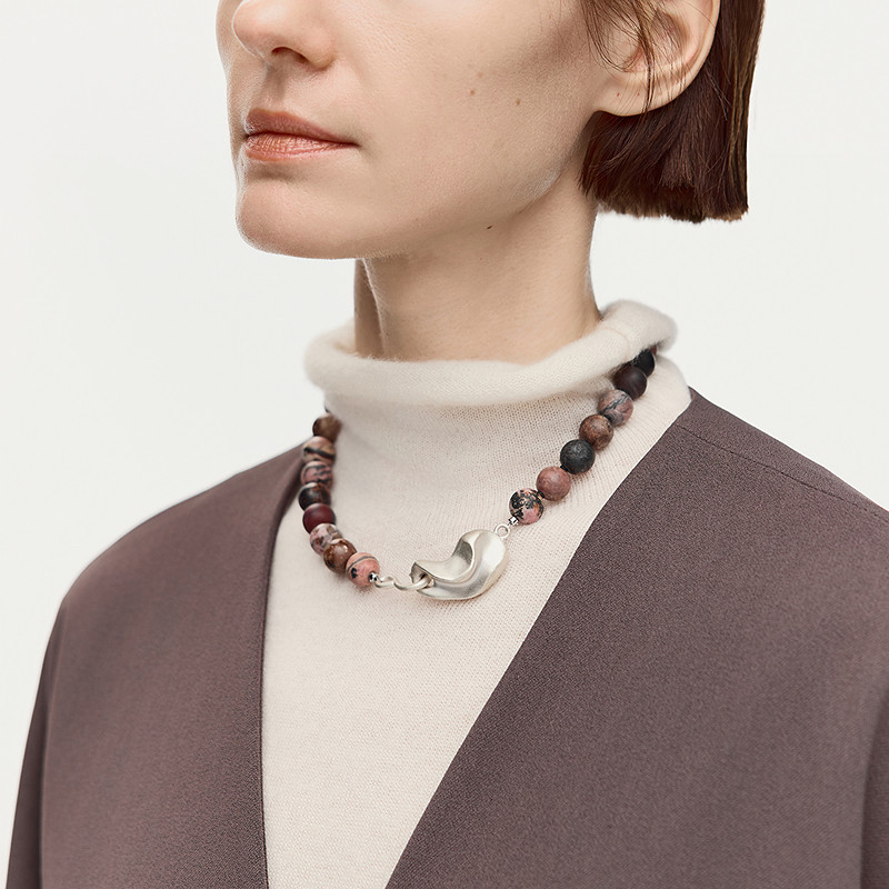 新款 AUM噢姆2026年春季 黑粉撞色休闲蔷薇辉石项链女 灵感搭配