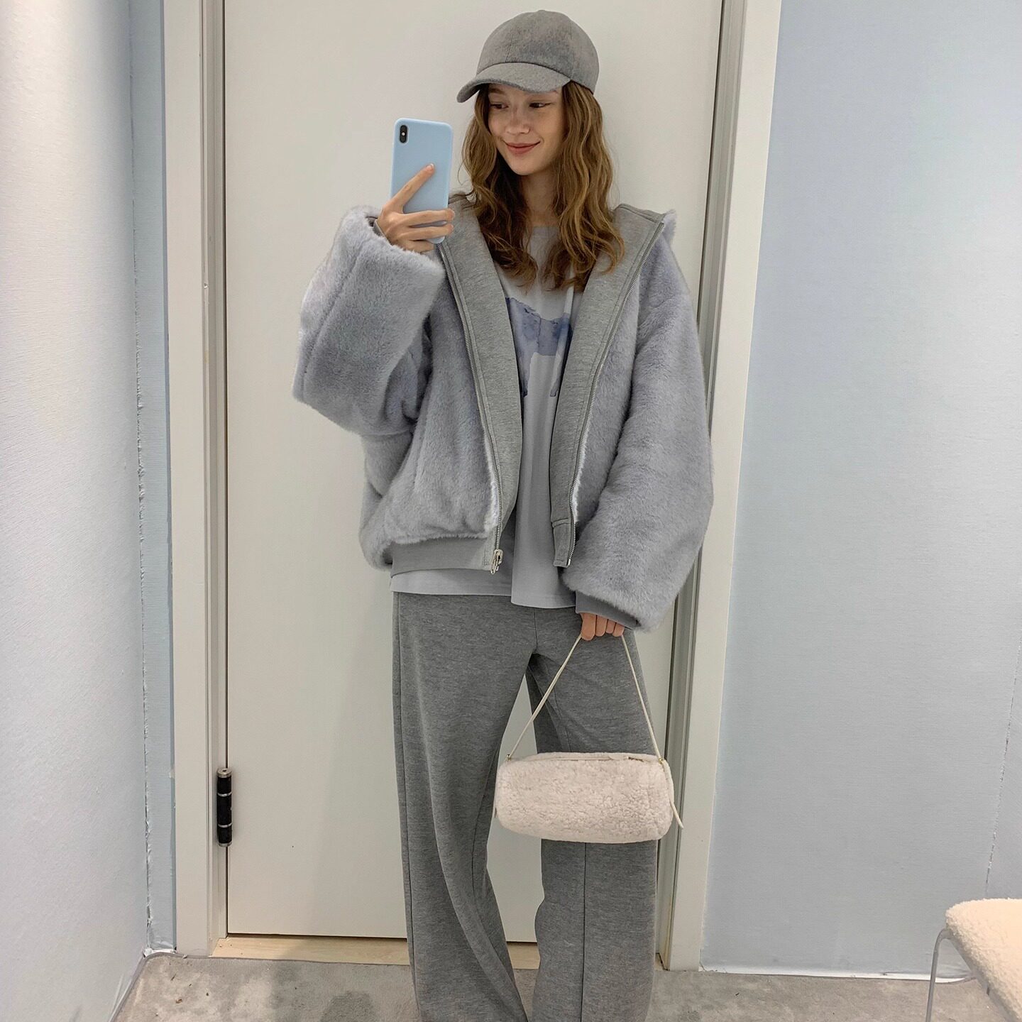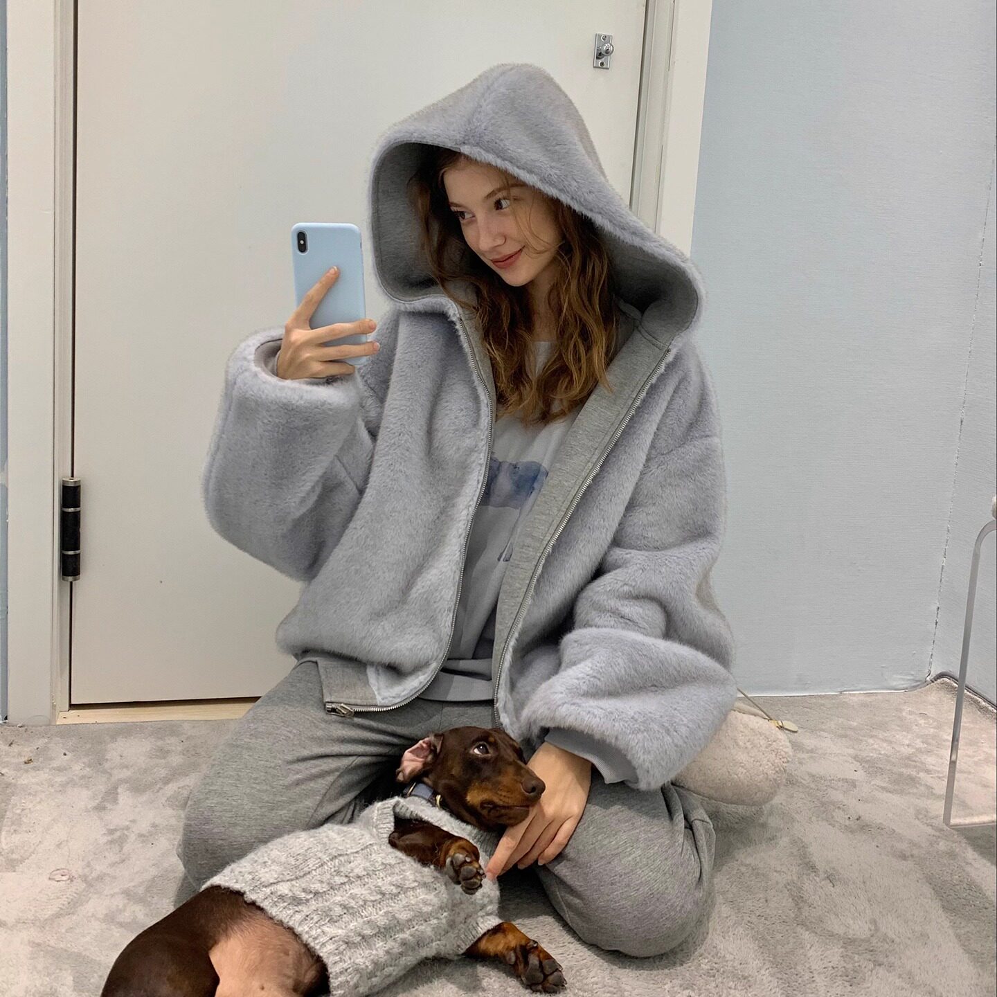 慵懒双面穿皮草连帽休闲宽松厚卫衣外套 冰川雪淞 KERNEL COSMOS