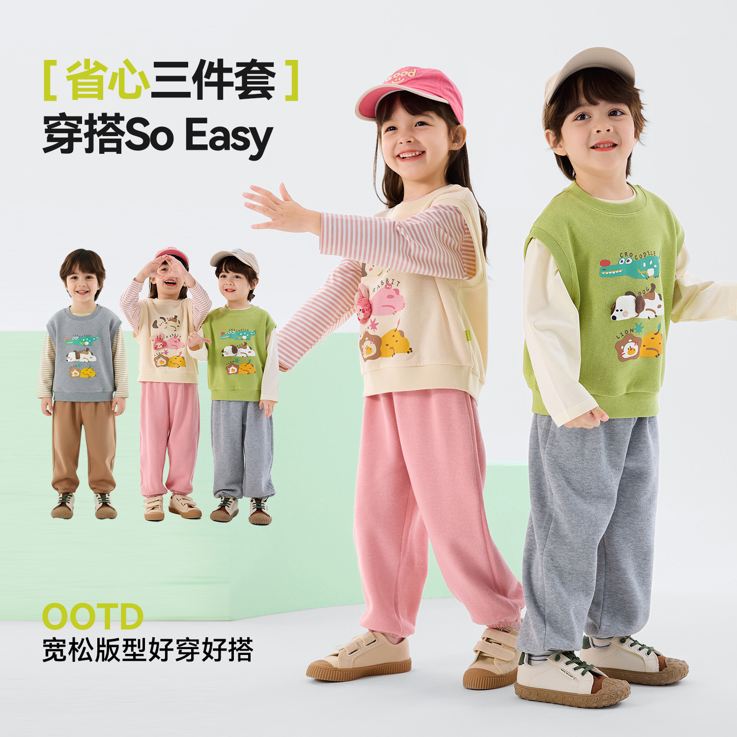 抖音同款 儿童T恤马甲女童裤 三件装 春季 子春款 嘟嘟家男童套装