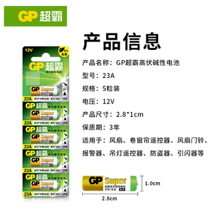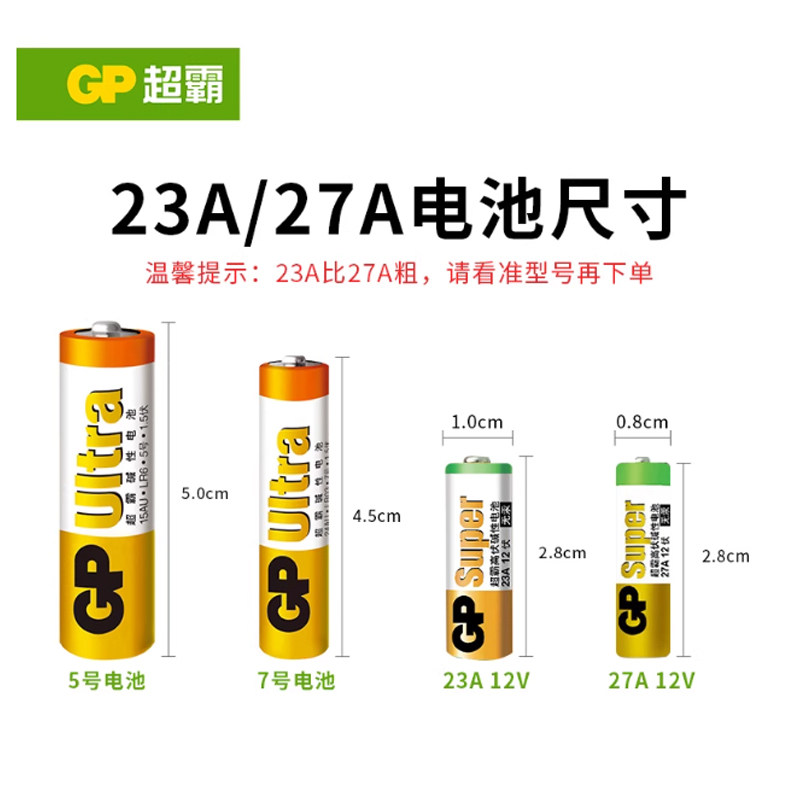 GP超霸23A27A12v遥控器电池卷帘门铃门禁led吸顶灯风扇灯吊扇灯车库卷闸门遥控器引闪器高伏碱性小电池