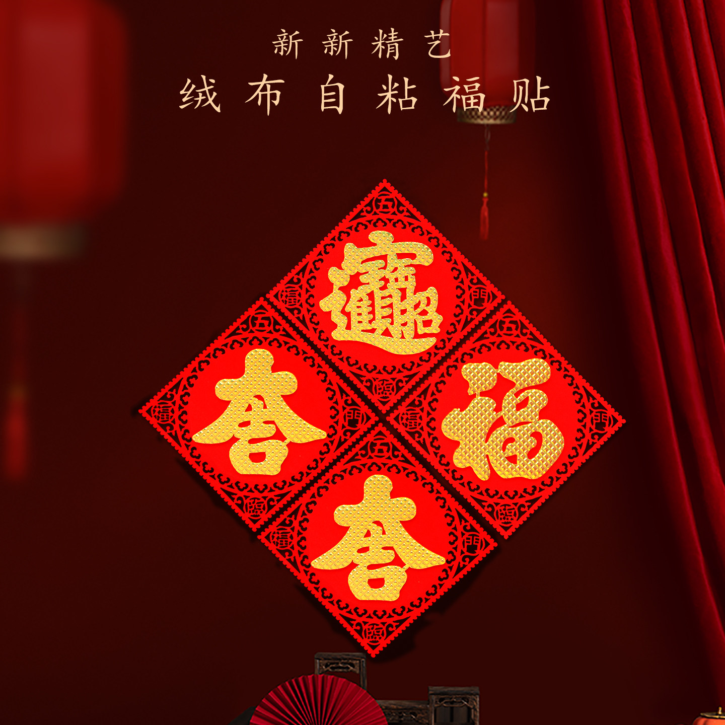植绒面窗贴特大号福字门贴窗花剪纸静电贴纸玻璃贴过新年乔迁装 饰