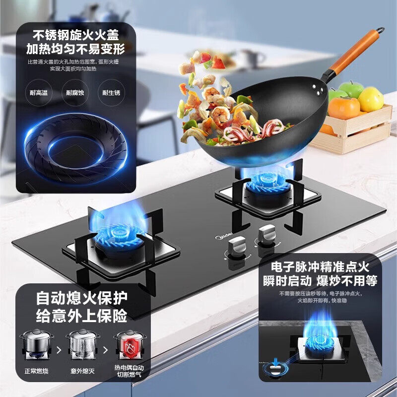 荣事达煤气灶家用猛火台式 双头灶具节能炉具 燃气灶天然液化气老式