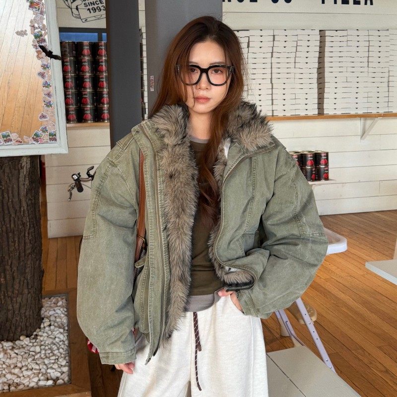 New 复古做旧重工可拆卸毛毛领羽绒夹克秋冬外套