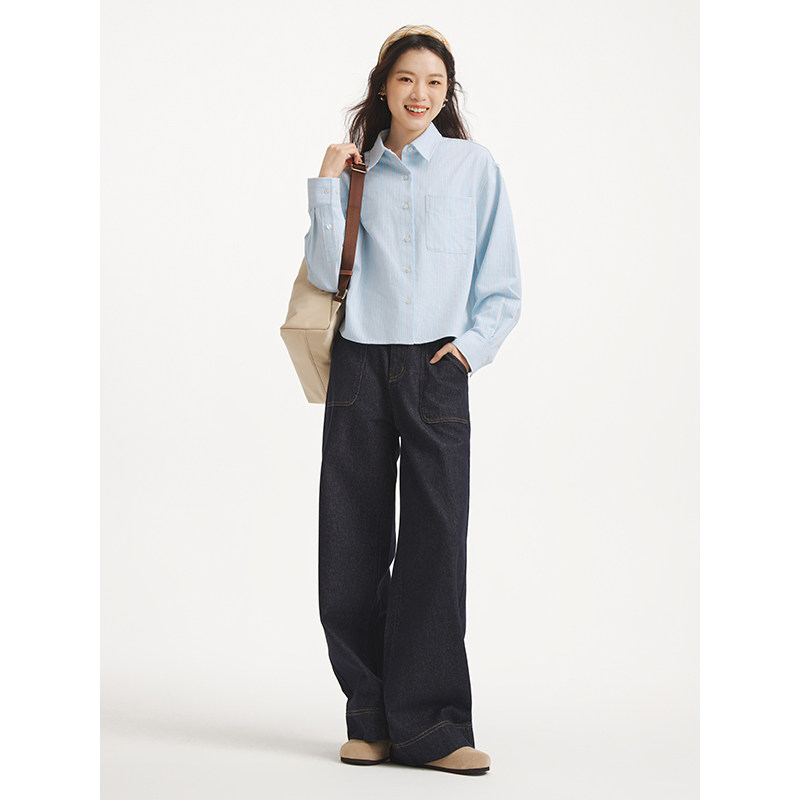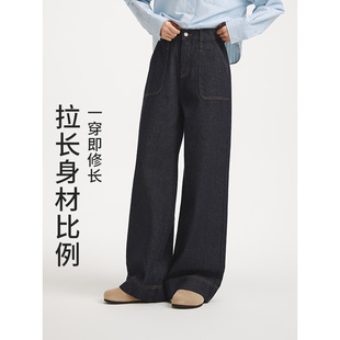 牛仔裤 慵懒高腰裤 2025新款 微弹修身 1236909 水洗阔腿牛仔裤 HM女装