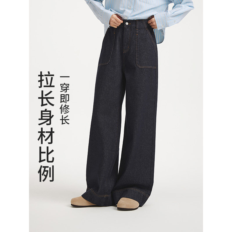 冬季 加绒加厚弹力利落干脆直筒牛仔裤 IHIMI海谧窄版 女 会员8折