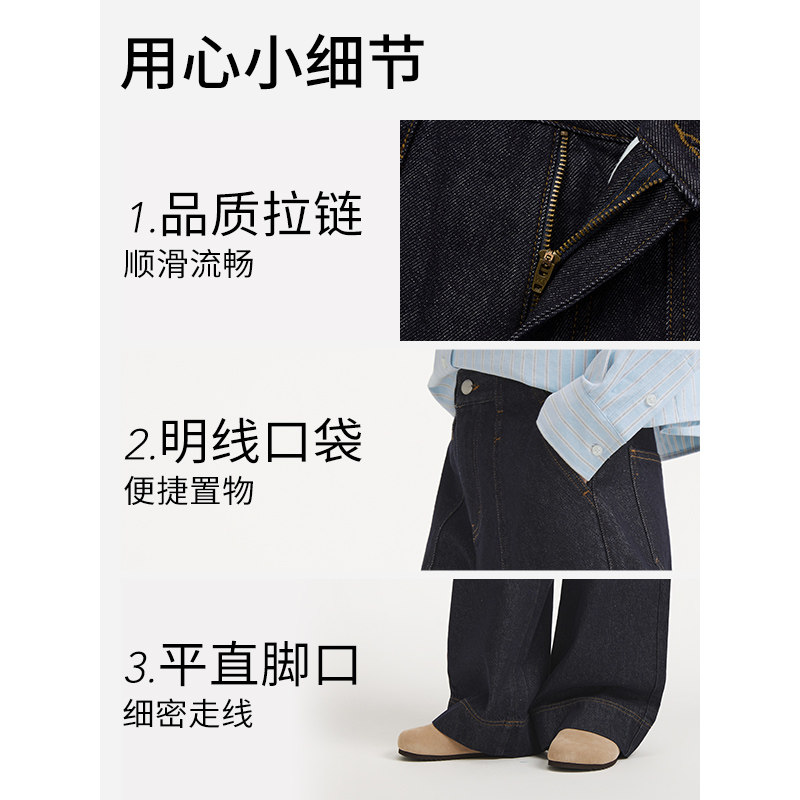 丹宁直筒休闲通勤长裤 HM男装 新款 2026春季 1316883 牛仔裤