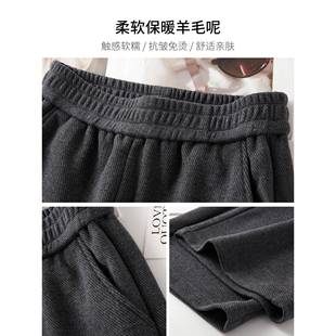 慵懒风毛呢糯米裤 百搭阔腿裤 女士秋冬新款 高档通勤灰色羊绒直筒裤