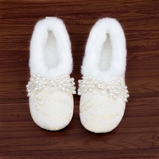 国风复古保暖绣花汉服棉鞋 女绒软底一脚蹬新中式 老北京布鞋 冬季