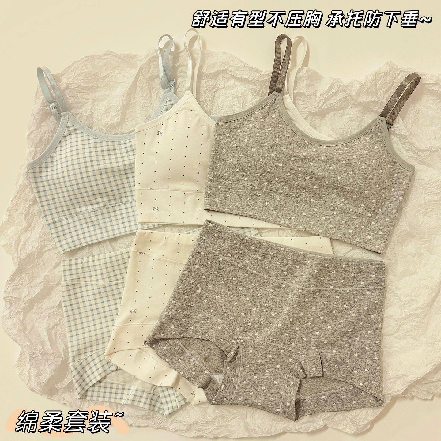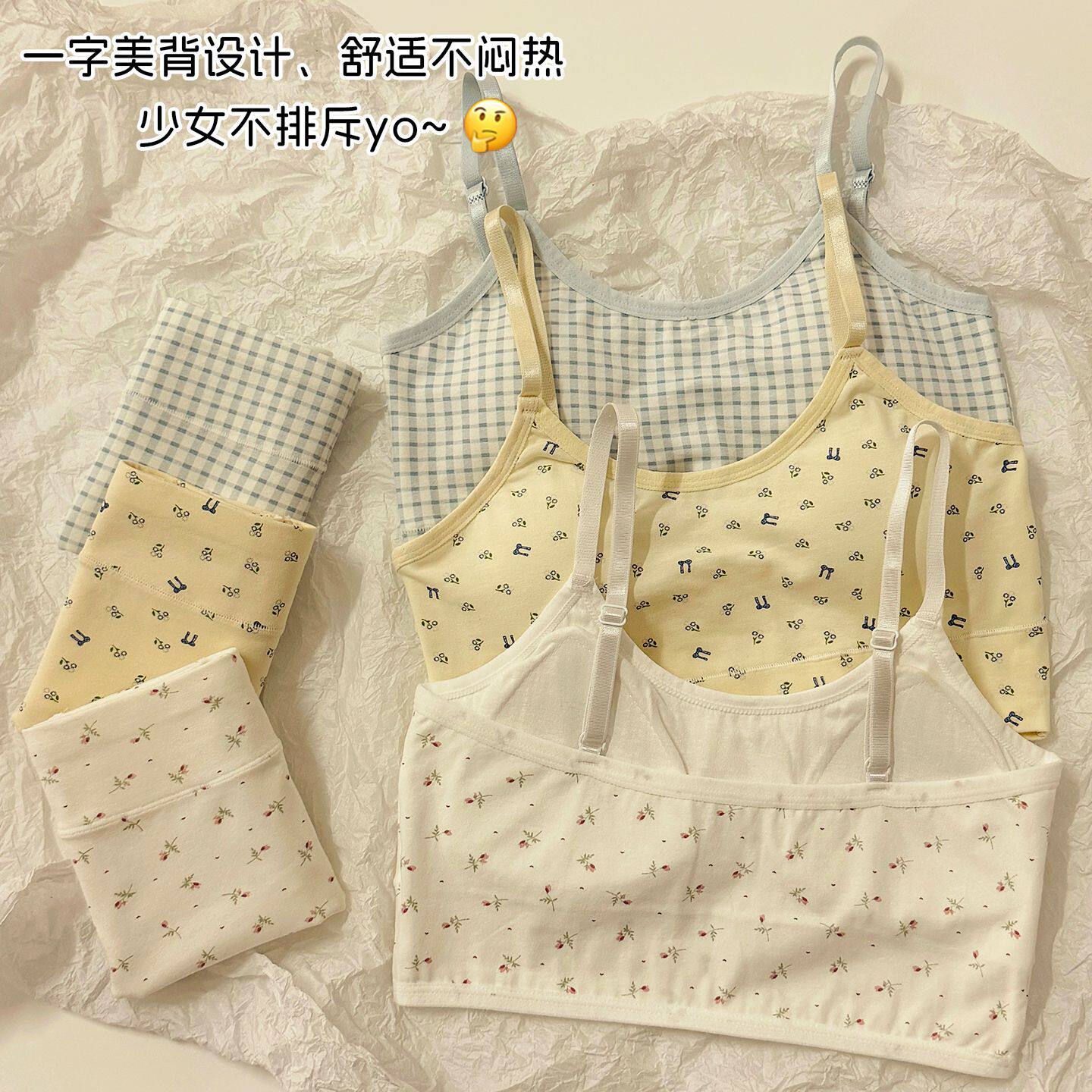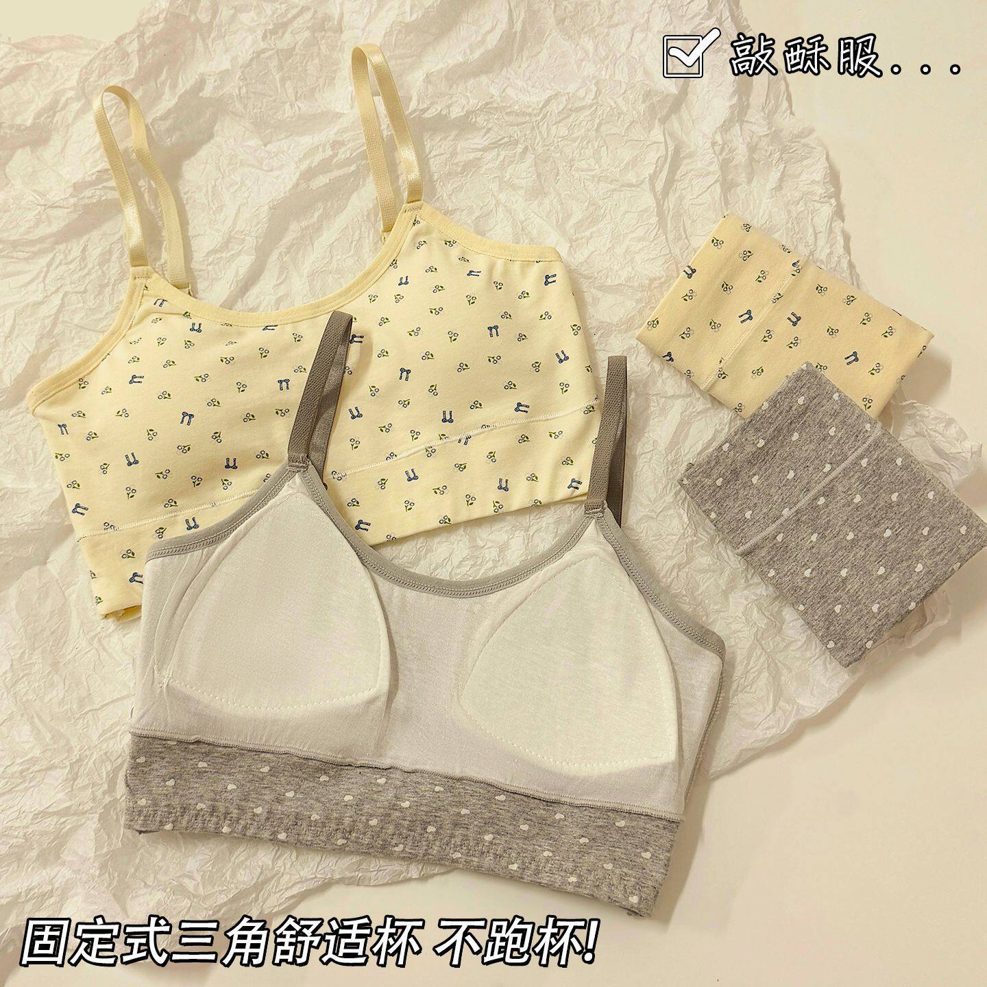 纯棉内衣女初高中学生发育期固定杯无痕防震文胸套装 运动透气背心