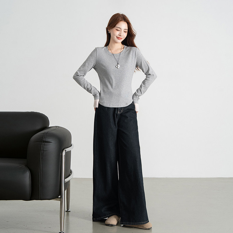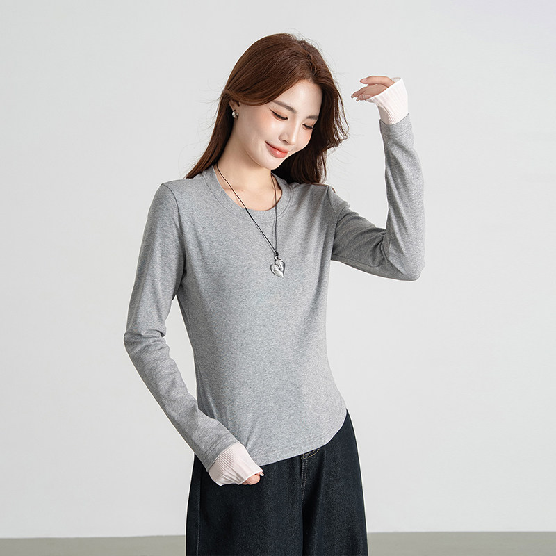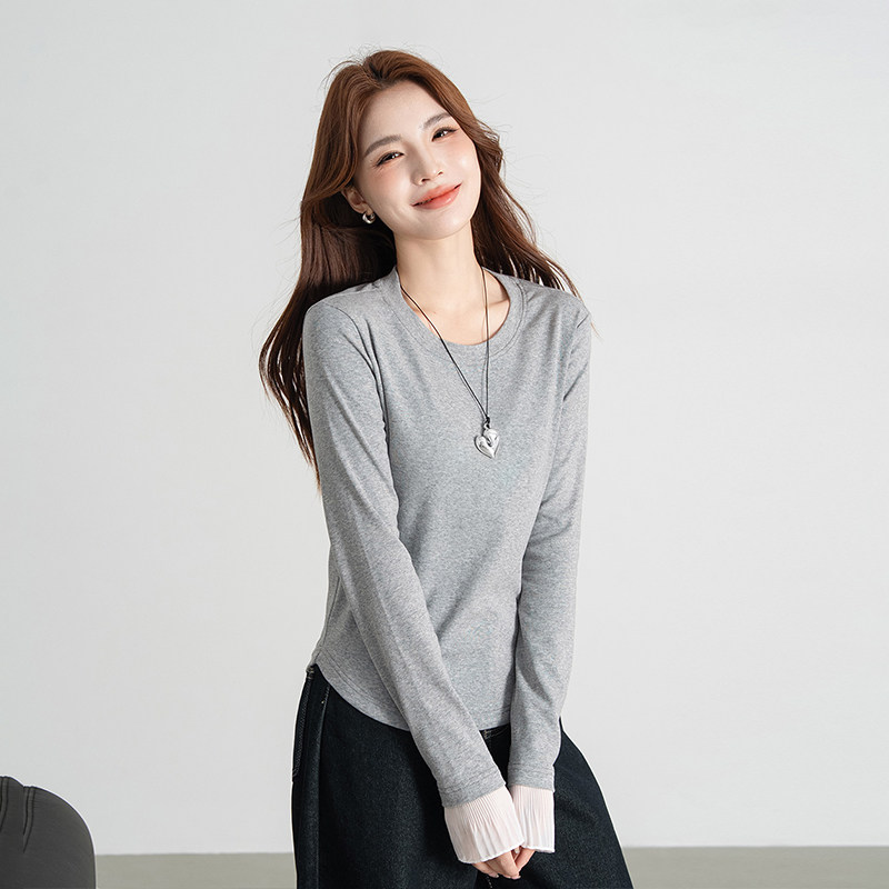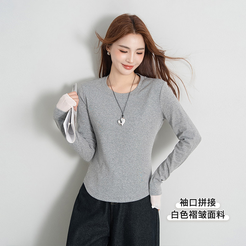 打底衫 韩系简约休闲长袖 女款 热风女士拼接网纱甜美减龄T恤秋季