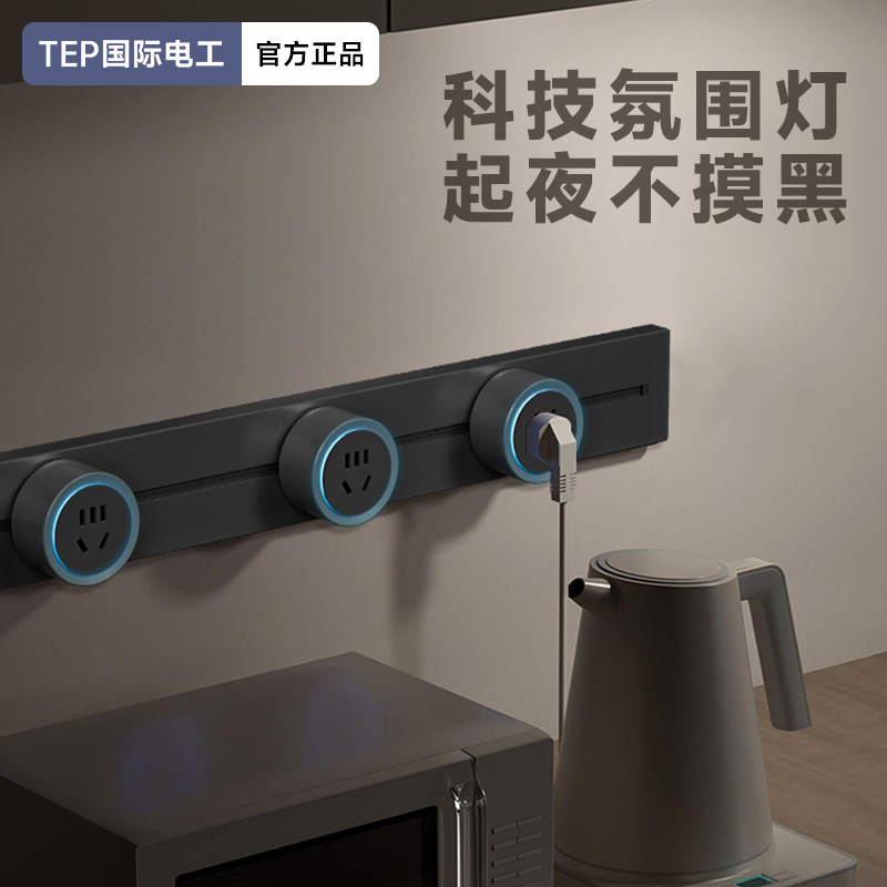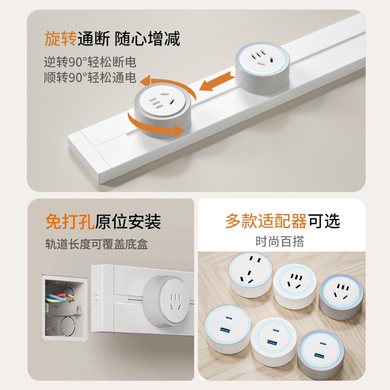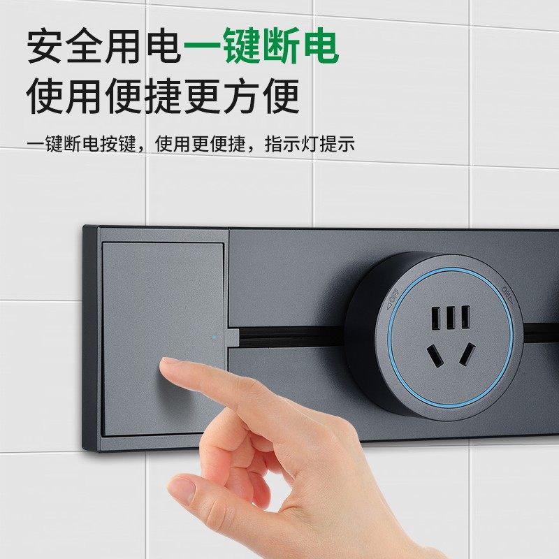 国际电工第六代滑动轨道插座轨道式 可移动厨房家用餐厅滑轨插排