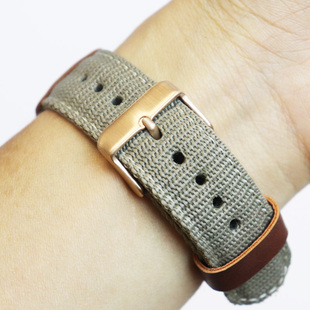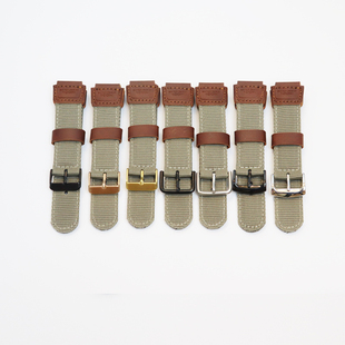 适配卡西欧Forester森林人尼龙表带FT500W皮革拼接尼龙19mm卡其棕