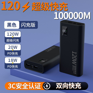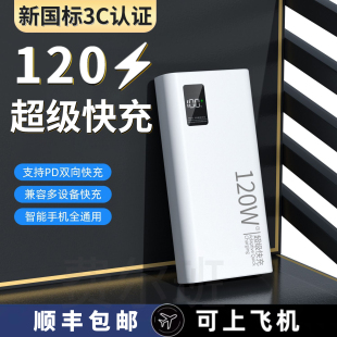 充电宝20000毫安快充新国标3C认证2025新款 超级超薄大容量移动电源小巧便携适用于华为苹果可上飞机黑色闪充