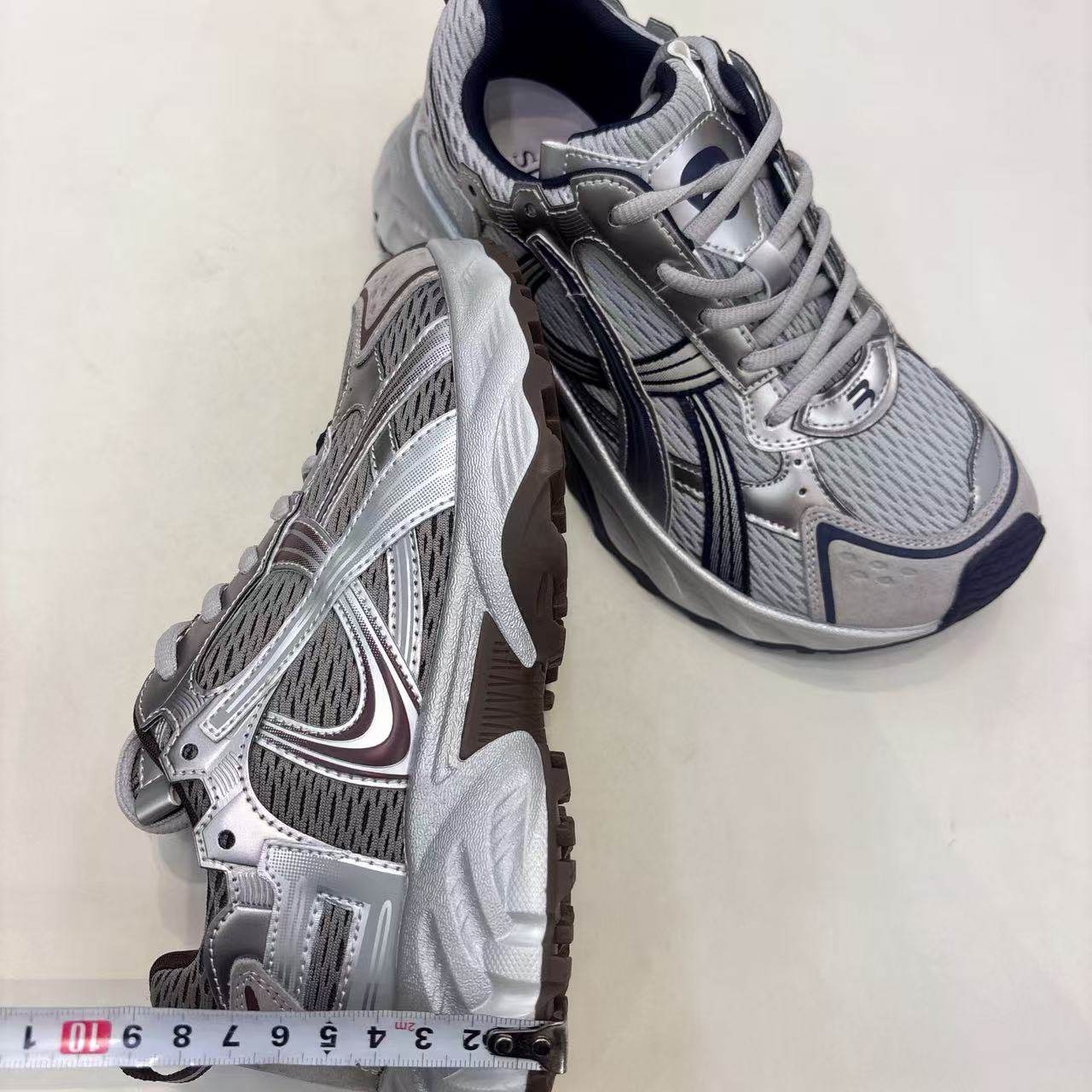 2025秋季 骆驼女鞋 新款 休闲加绒老爹鞋 女 厚底增高银色运动鞋 银熠