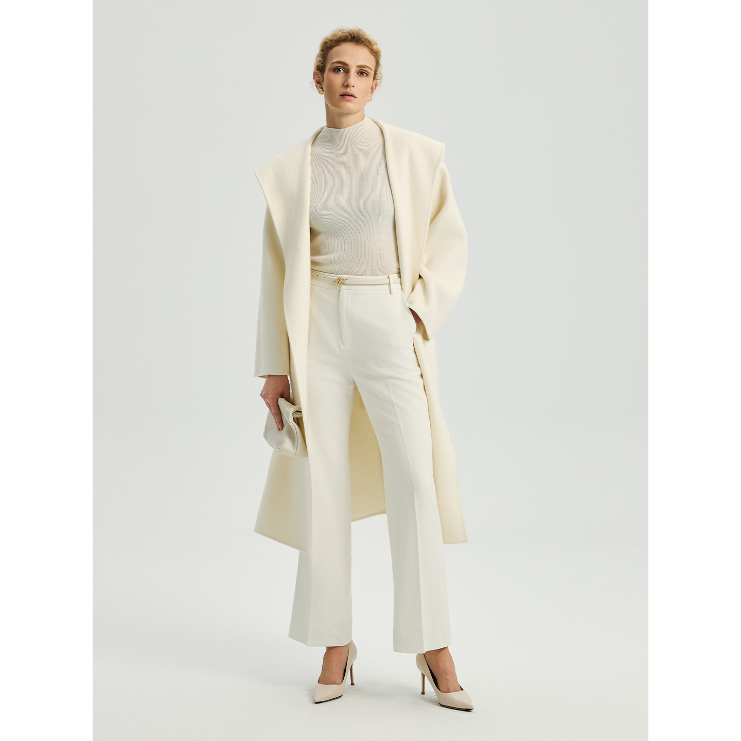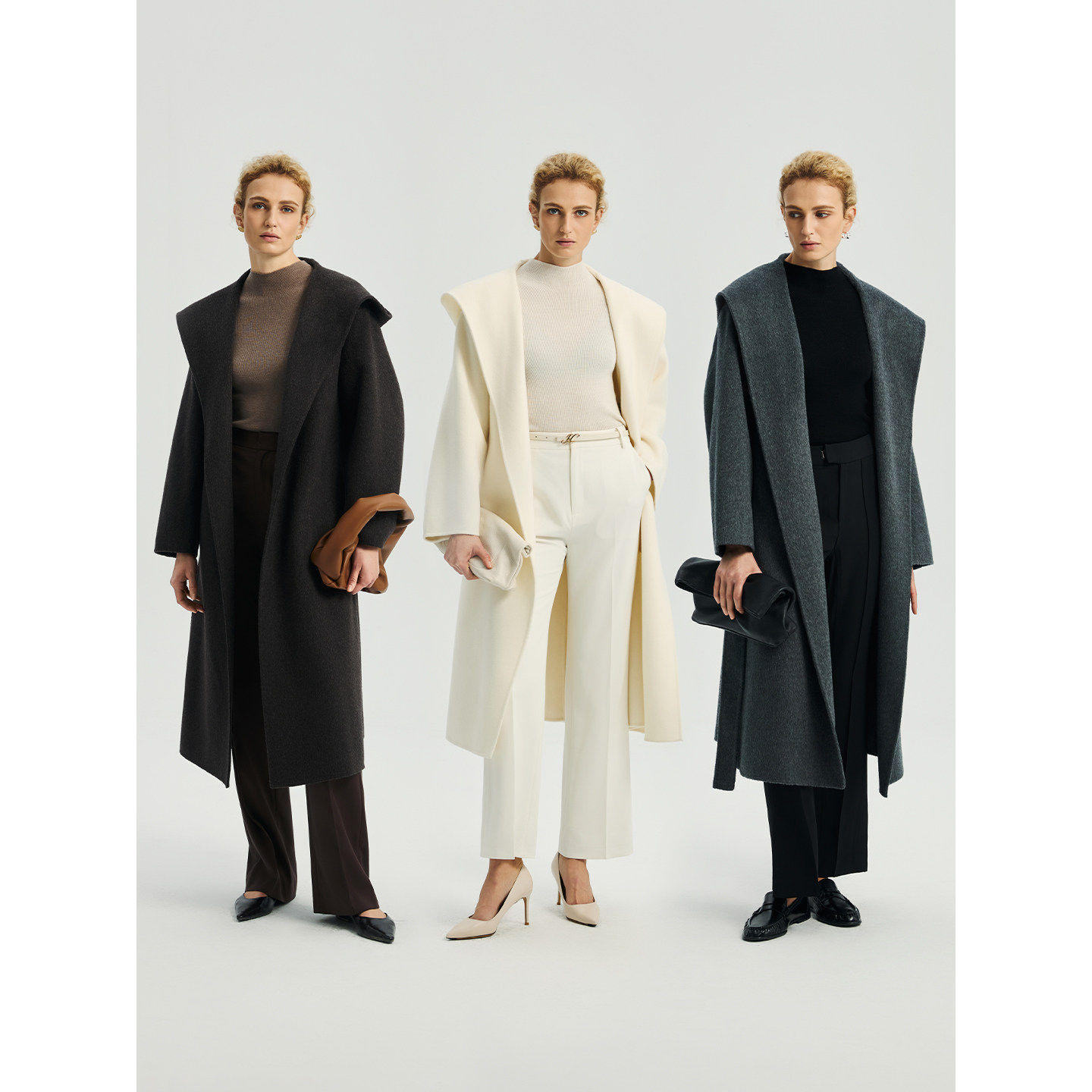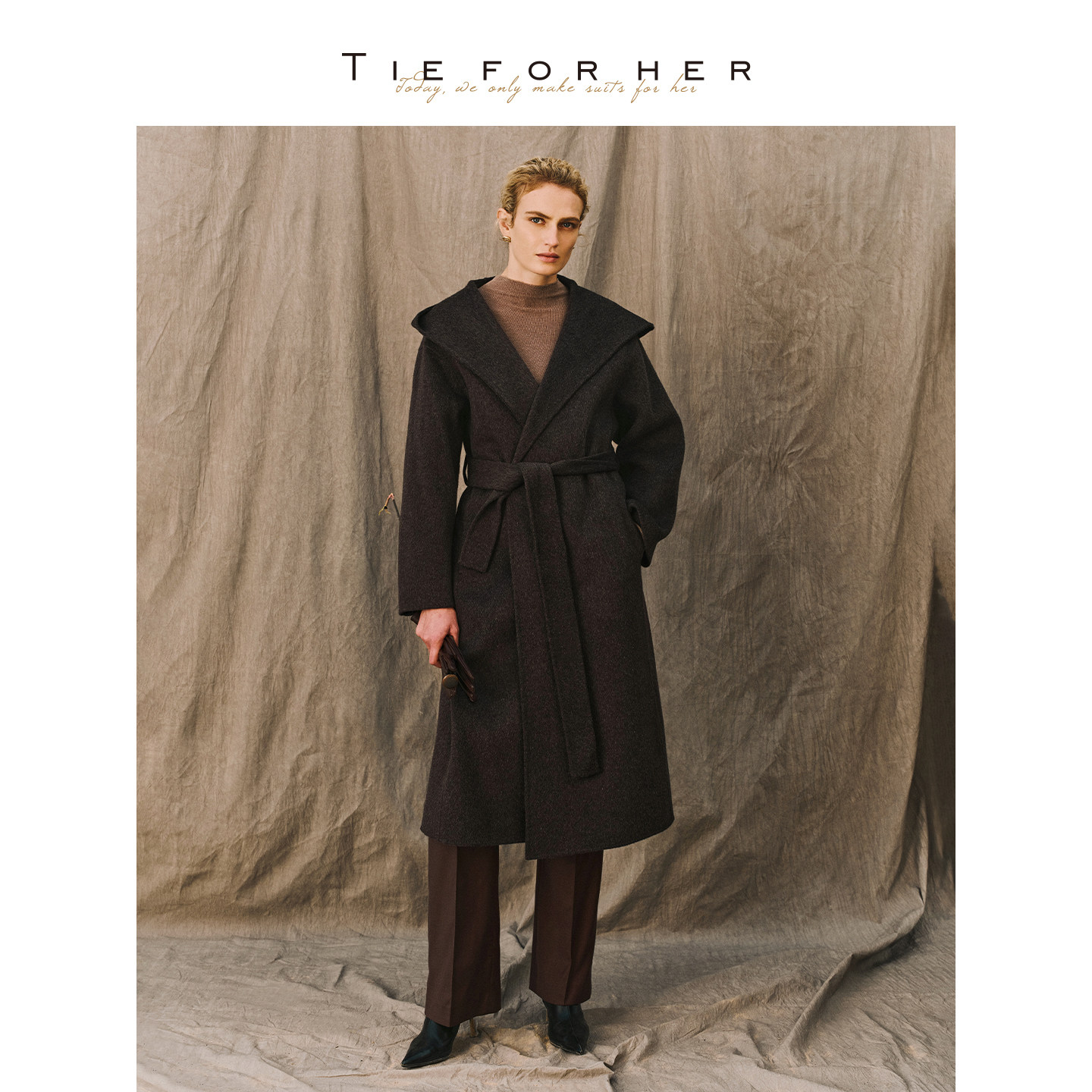 羊毛长款 白金大衣大翻领连帽慵懒风浴袍款 女冬 WGC系列 TieForHer