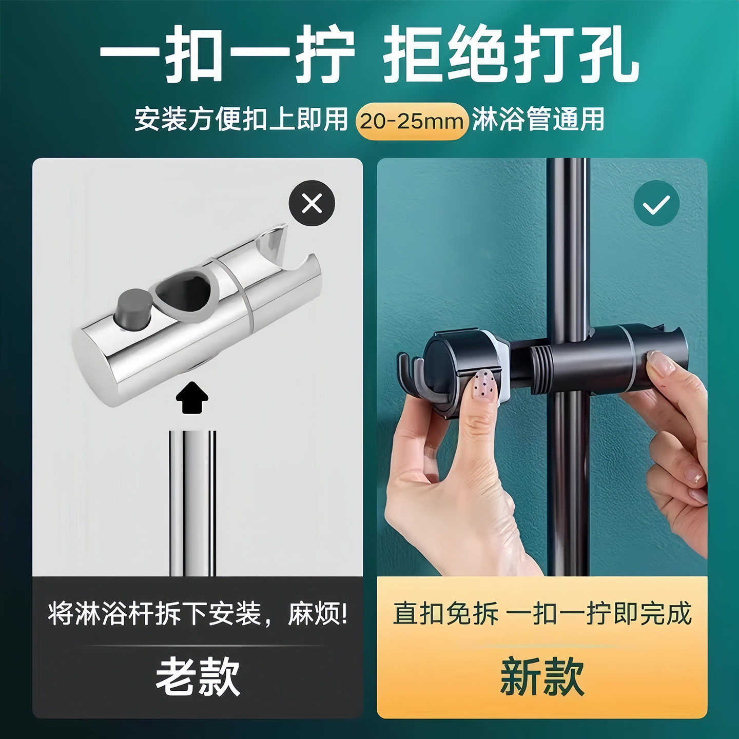 免打孔花洒支架挂座升降杆淋浴器中叉配件喷头固定底座淋浴杆滑套
