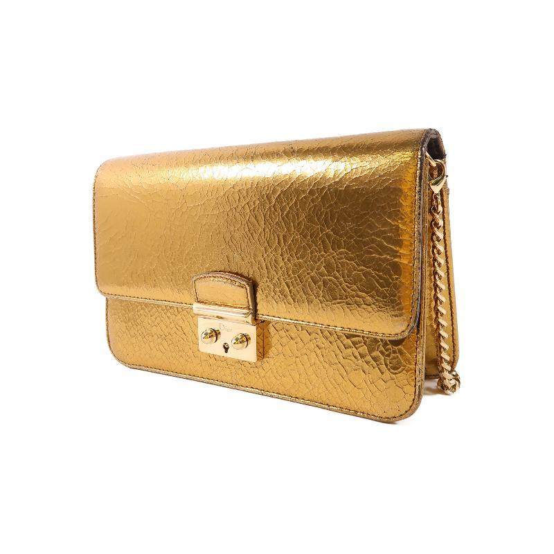 中古Dior迪奥女包B级9新Chain Shoulder链条肩带牛皮斜挎包金色