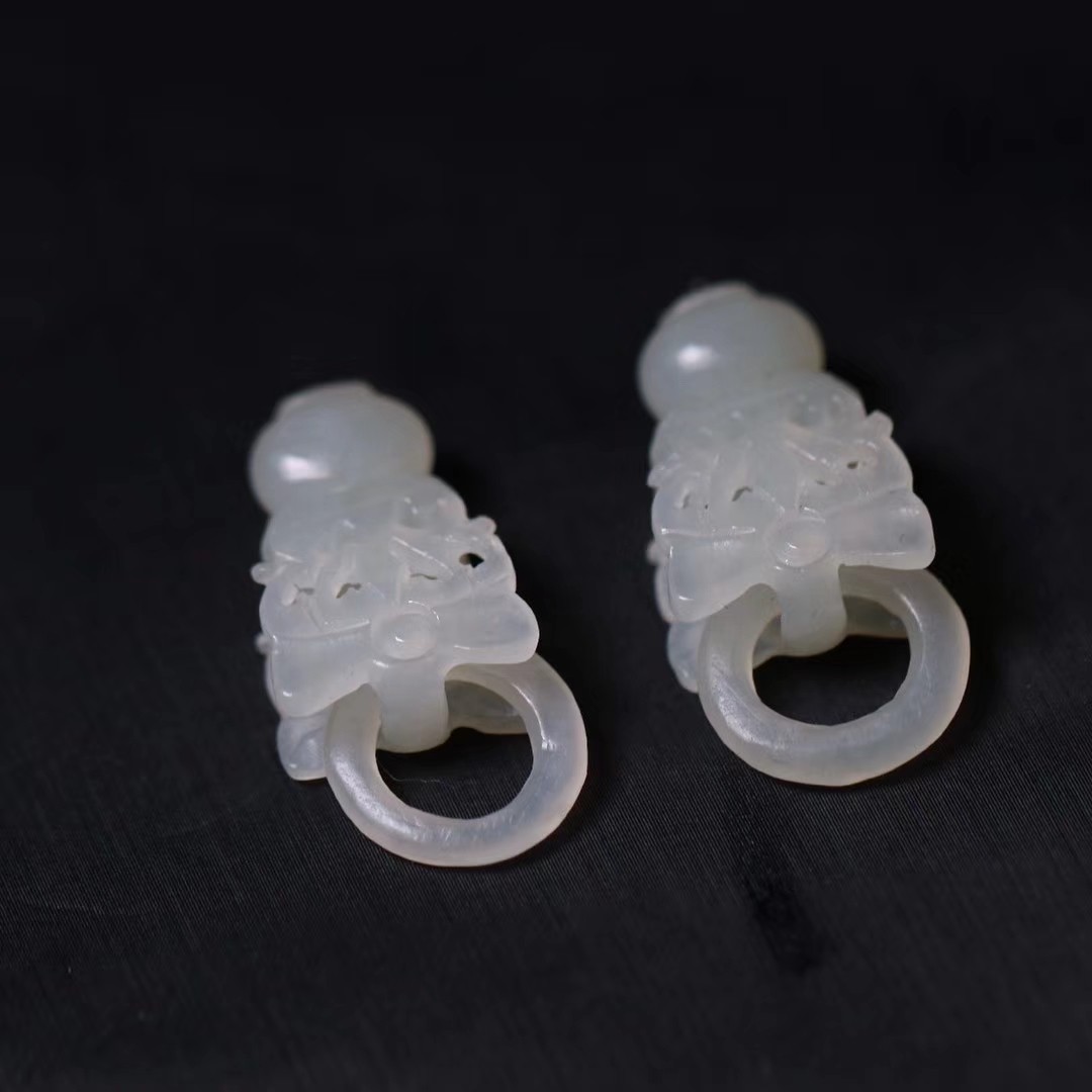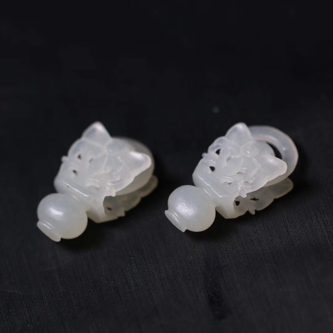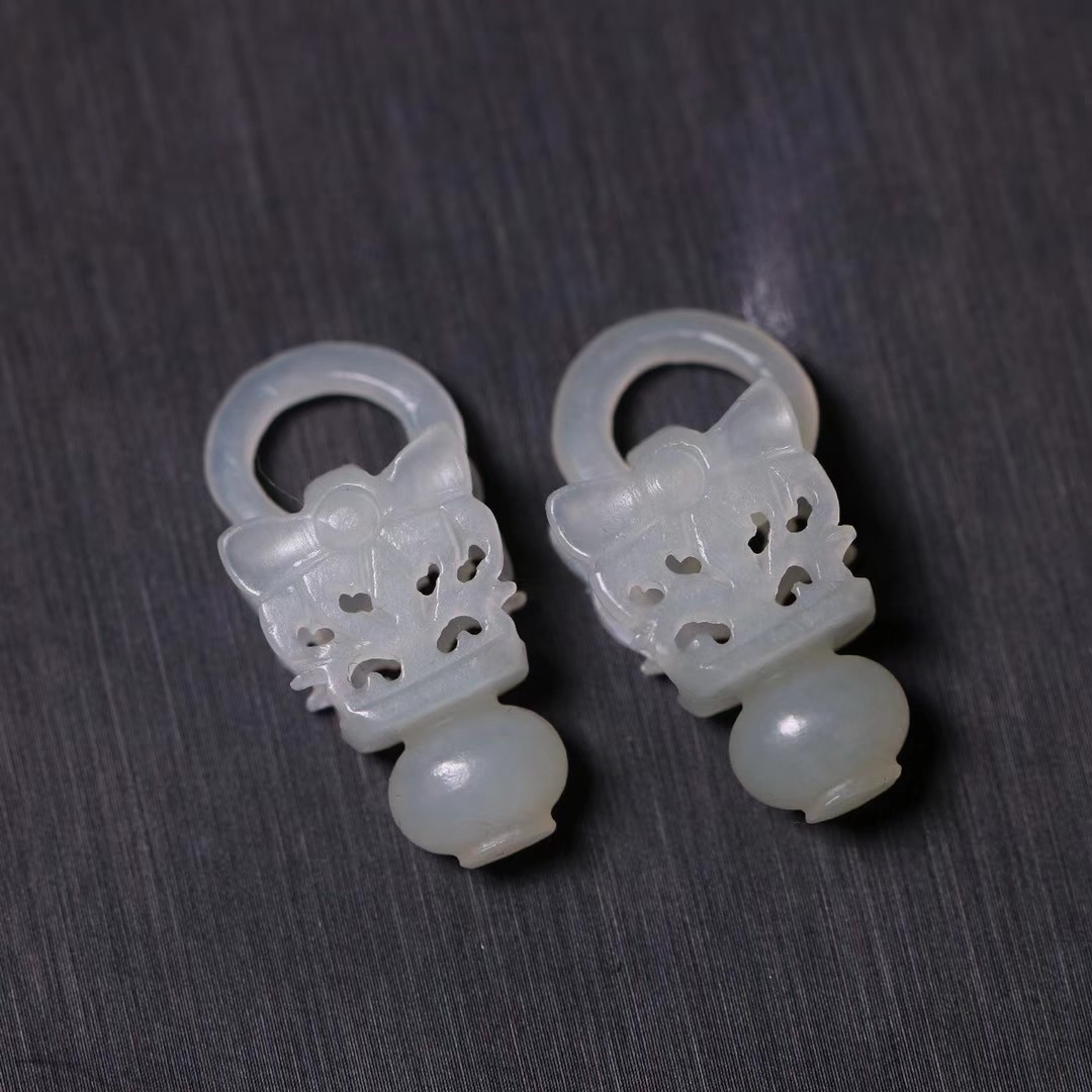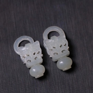 镶嵌耳坠漂亮 H888和田白玉花篮吊坠