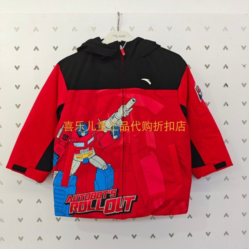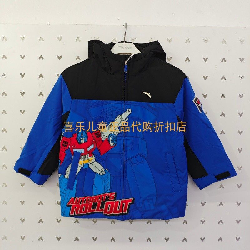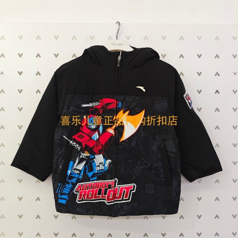 安踏儿童2025年冬款 男小童骑行系列变形金刚易去污连帽羽绒服9909
