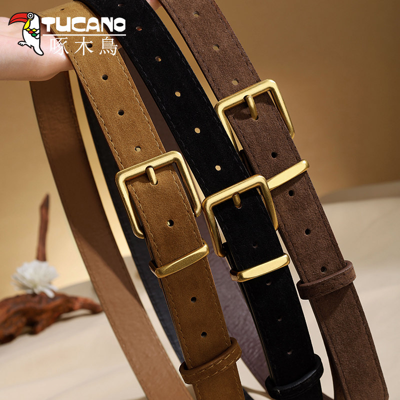 啄木鸟皮带女士2026新款 腰带 真皮复古绒面针扣牛皮高级感配牛仔裤