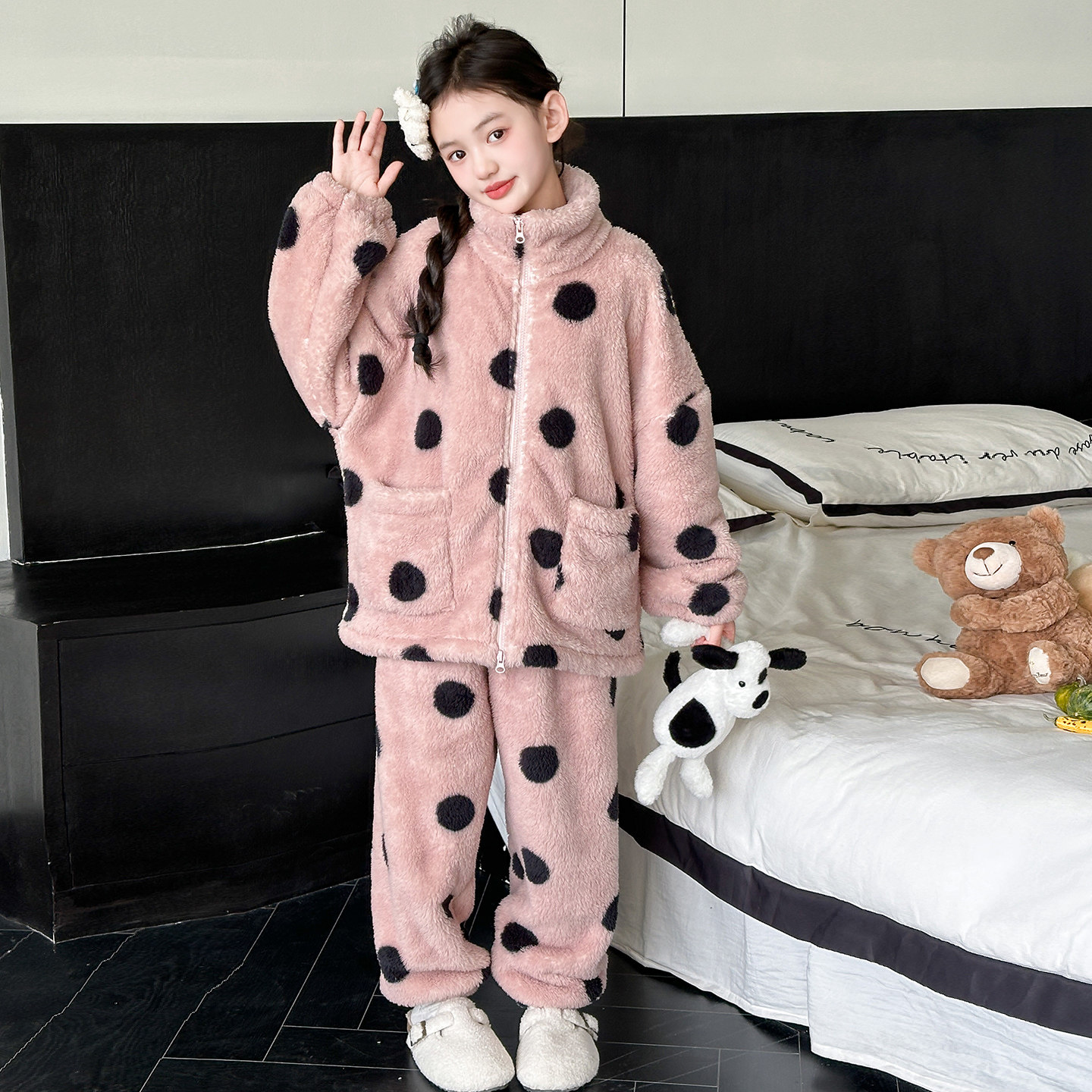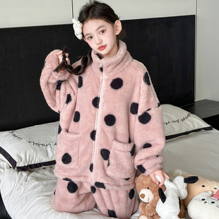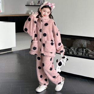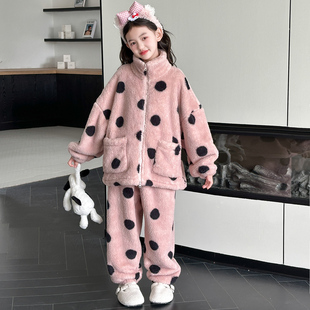 女孩冬季 女童睡衣2026新款 珊瑚绒套装 加厚儿童装 法兰绒家居服 冬季