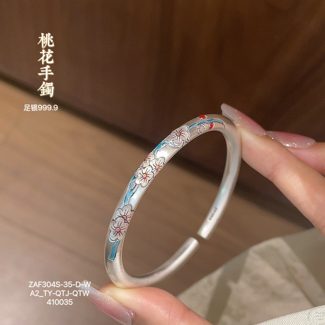 银手镯女9999纯银繁花似锦银镯子2025新款 银首饰生日圣诞礼物女生