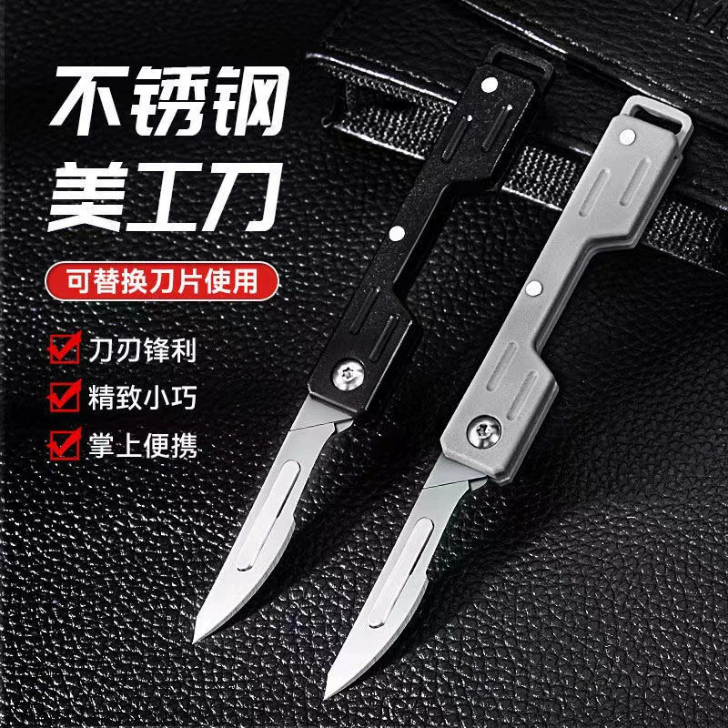 多功能不锈钢折叠美工刀手术柄架随身便携小刀锋利高硬度钥匙刀