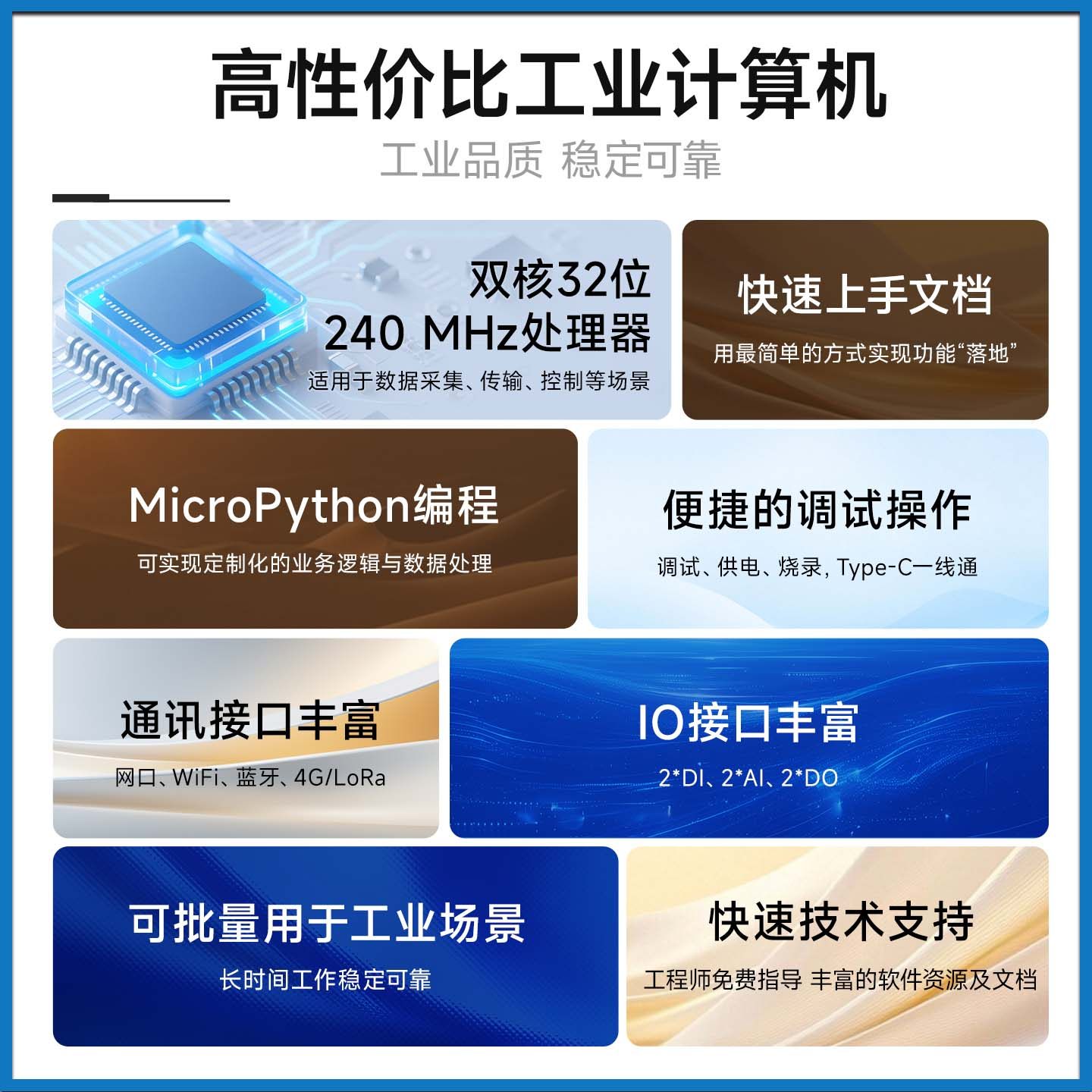 4G工控机 RTU网关RS485 ESP32嵌入式 工业控制器Python编程Modbus
