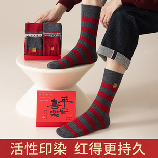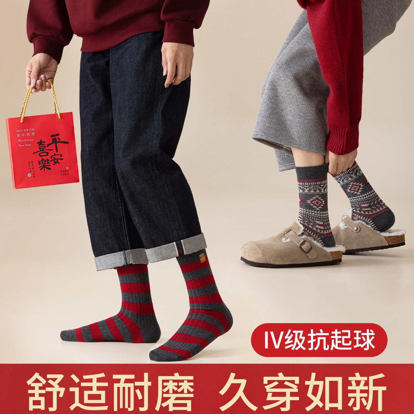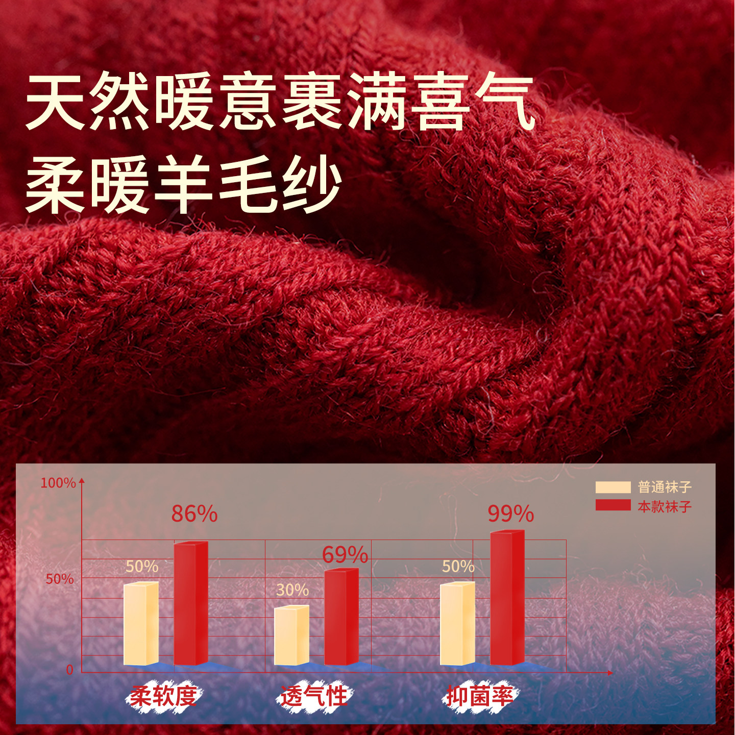 本命年红袜子男女秋冬羊毛加厚中筒袜情侣结婚喜袜一对新年好运袜