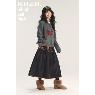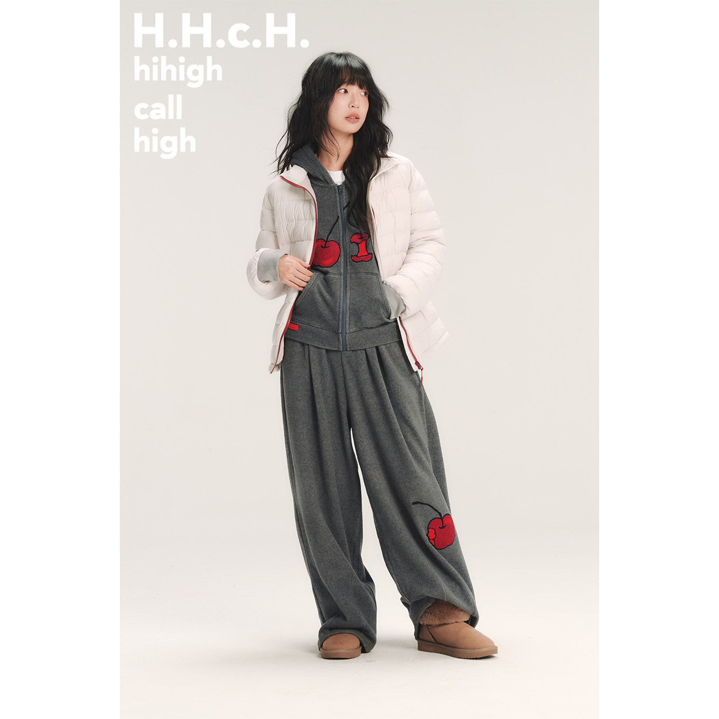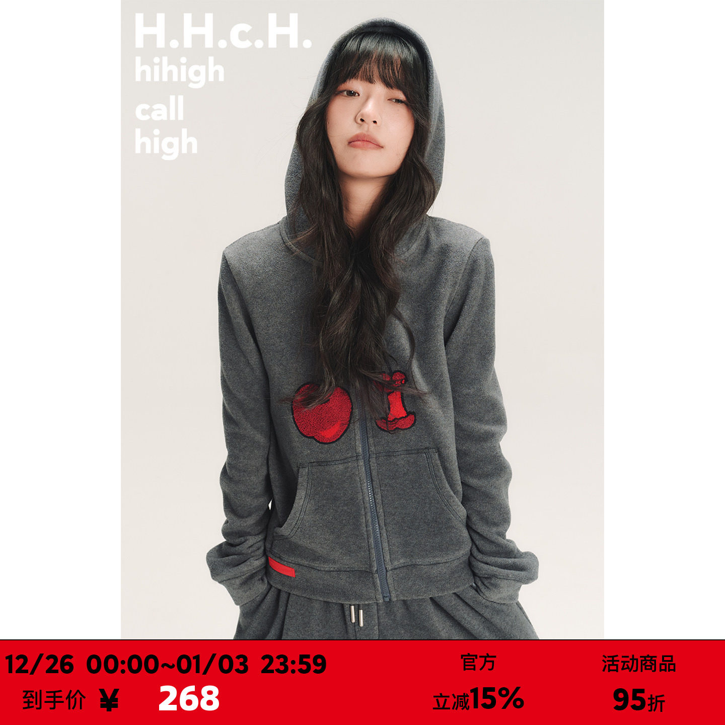 HHCH口海 手绘樱桃立体绣花高弹云朵触感连帽拉链卫衣外套 AW25