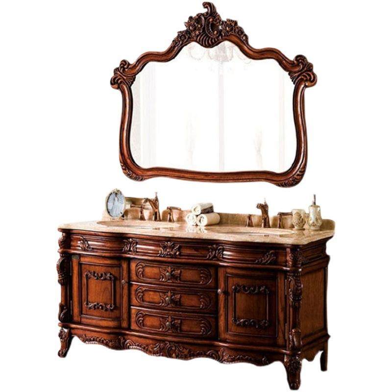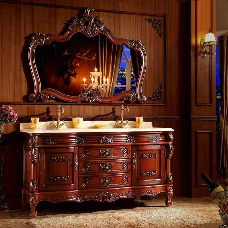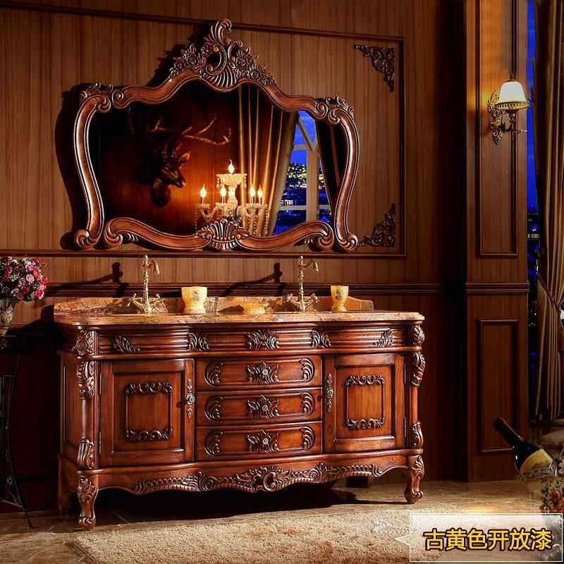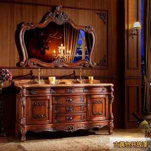 仿古红欧式 浴室柜木实木卫生洗漱台双盆大间理石GET洗手脸盆橡柜